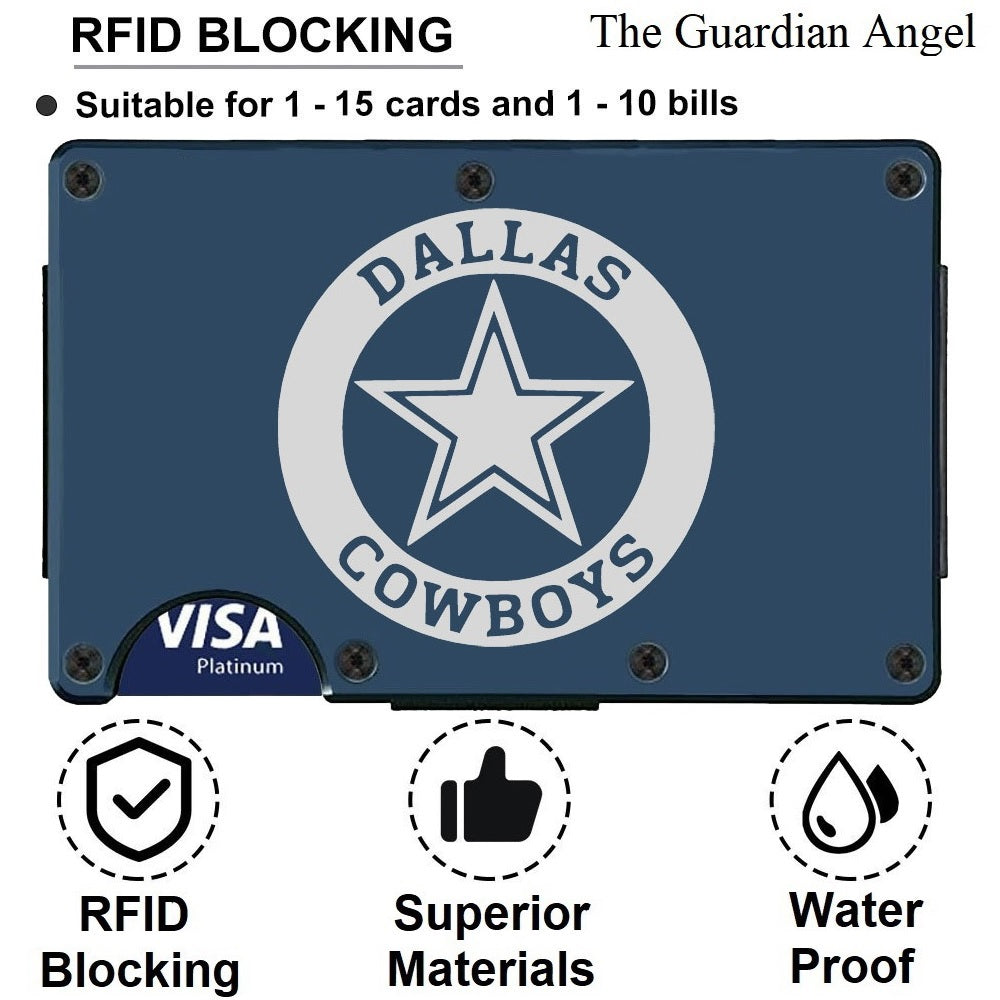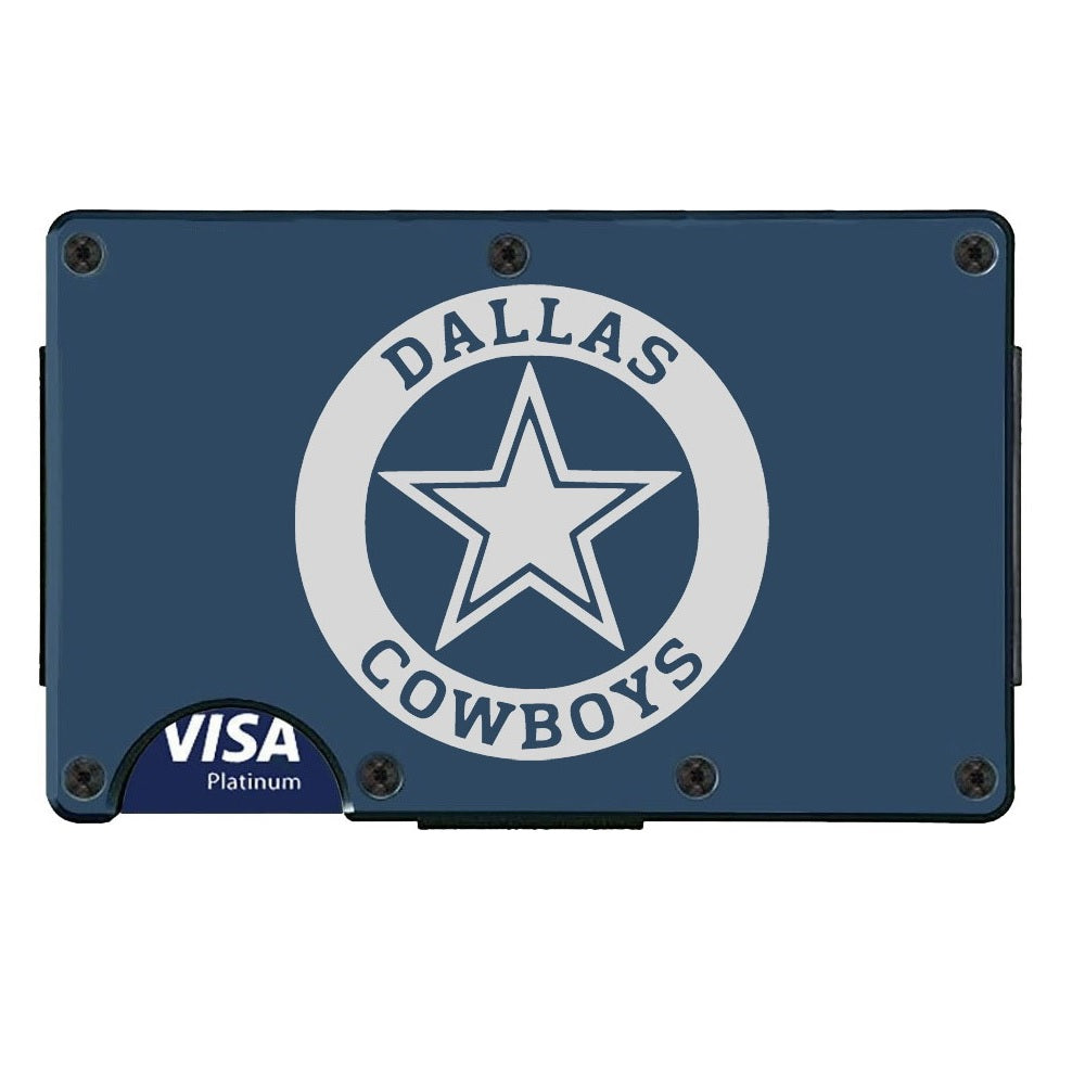 Dallas Cowboys Laser Engraved Blue Titanium Carbon Fiber RFID Blocking Wallet