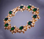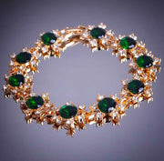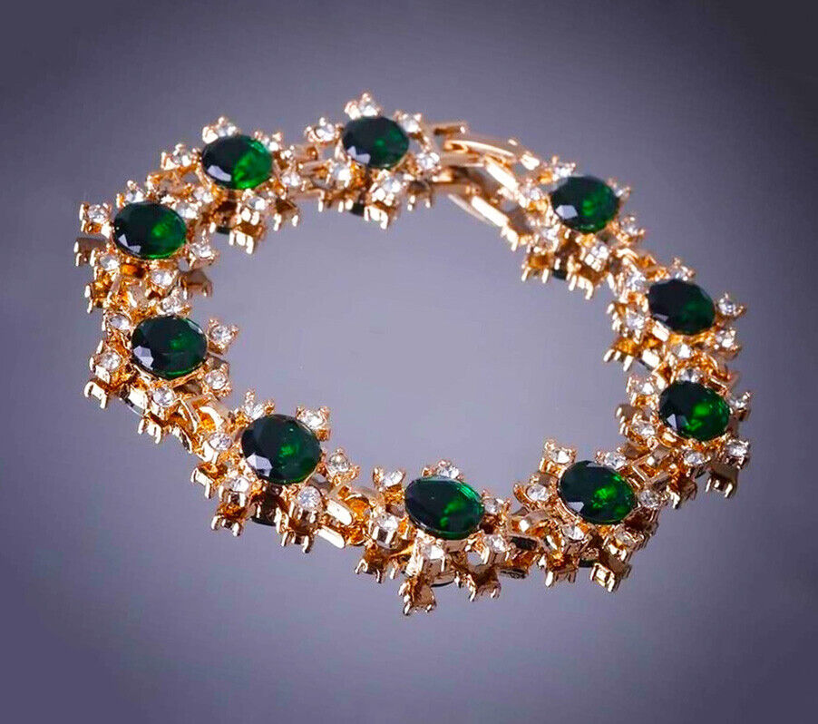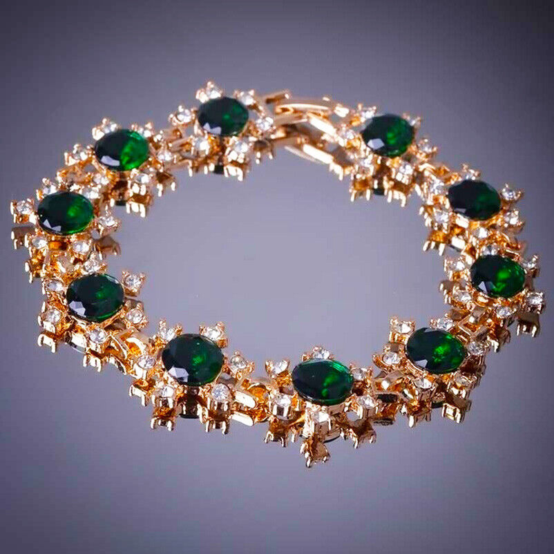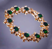 18k Yellow Gold Womens EmeraldCZ Flower and Crystal Link Chain Bracelet D221