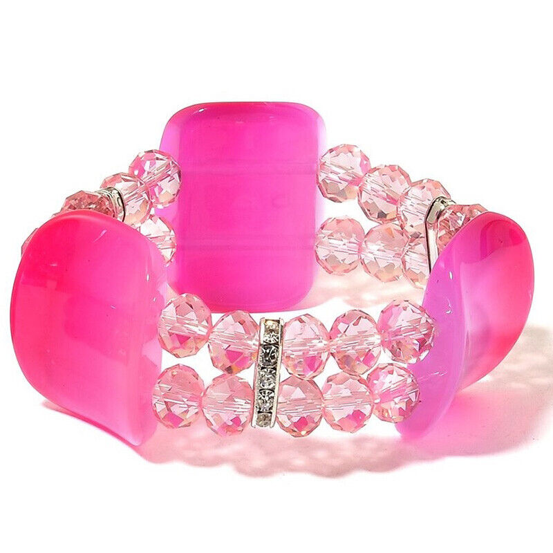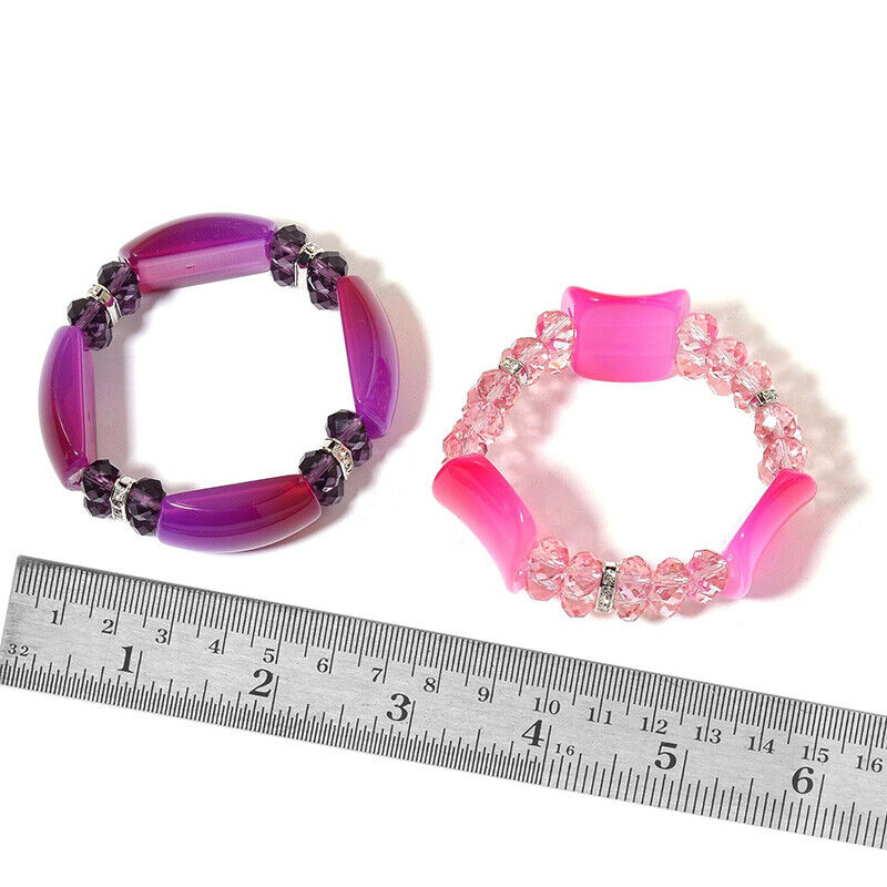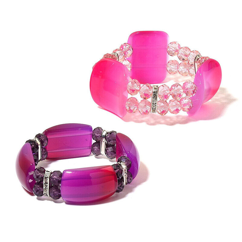 Sparkling beautifully, this set of two pink and purple glass bracelets display an amazing luster that will not wilt through the changing seasons. Laced with Rose Quartz, Amethyst Beads, and Austrian Crystals , this set includes stretchable bracelets. Beautifully crafted, this set of colorful delights is simply spellbinding.