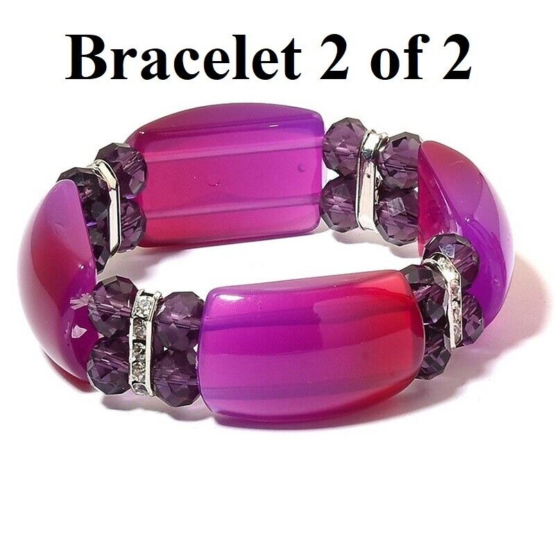 2 Pc Set Rose Quartz, Amethyst Beads Austrian Crystal Stretchable Bracelets S7