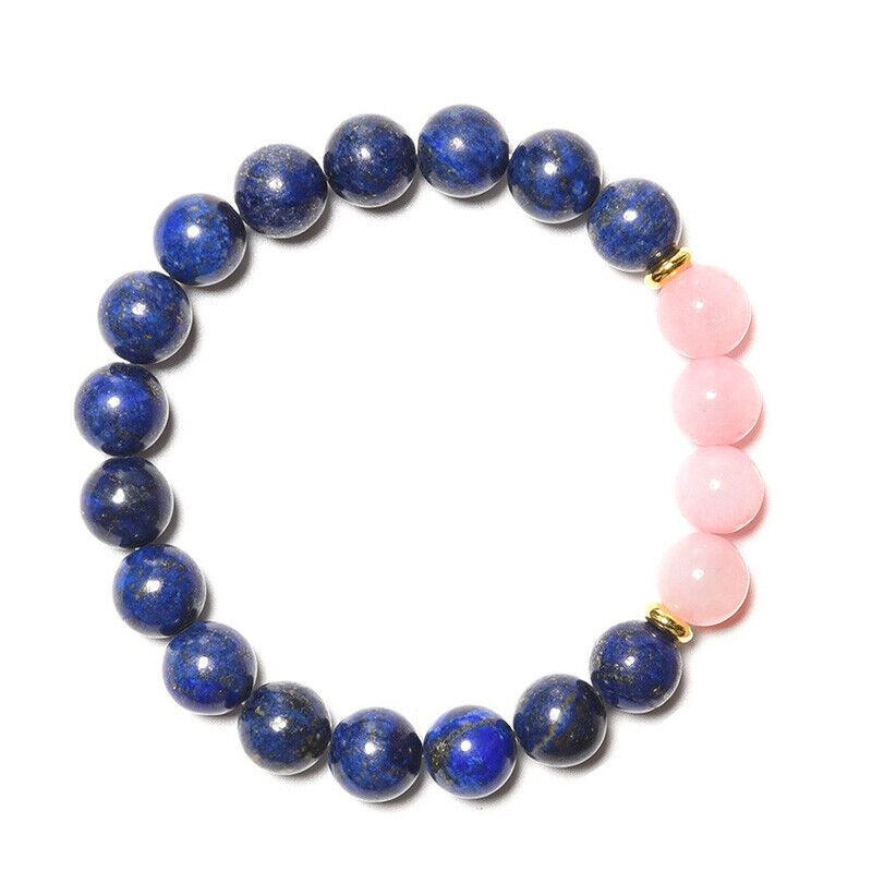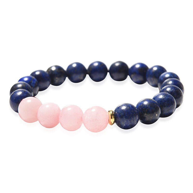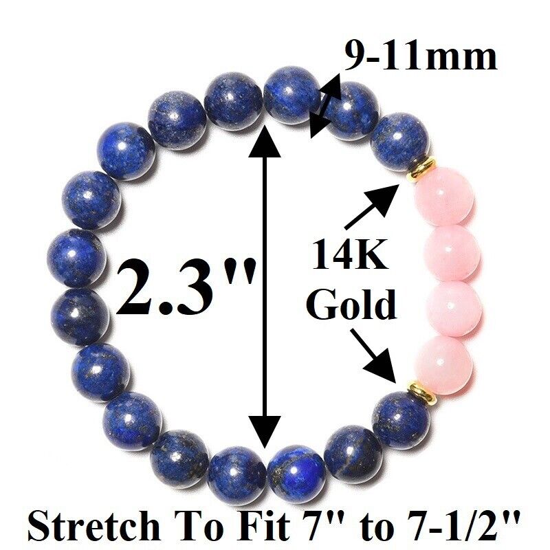 Description: 14K Gold Womens Natural Rose Quartz Lapis Lazuli Adjustable Stretch Bracelet - Mother's Distinctive Values - Mother's Distinctive Values