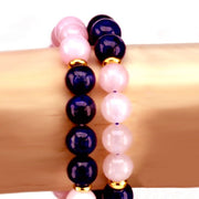 2 PcSet 14K Gold Women's Natural Rose Quartz Lapis Lazuli Stretch Bracelet 828
