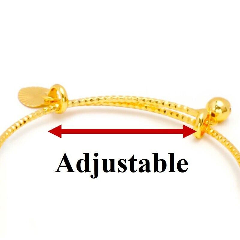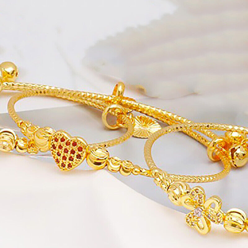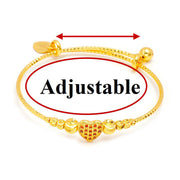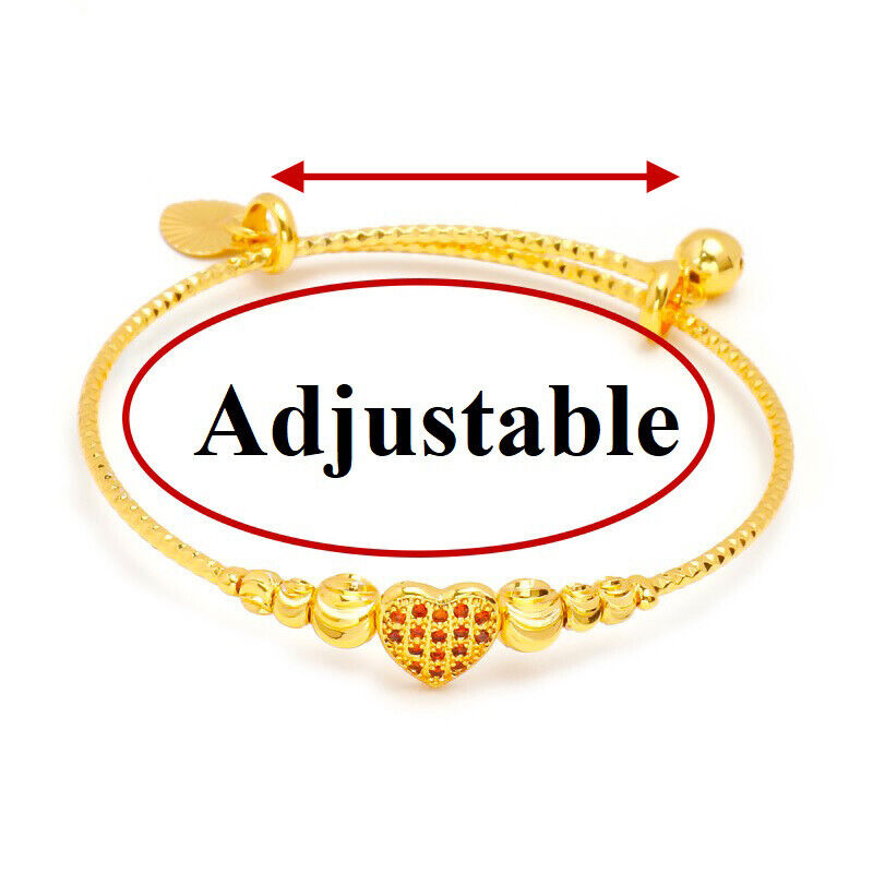 24k Gold Women Adjustable Chain 7" to 8" Red Heart Charm Bangle Bracelet D974