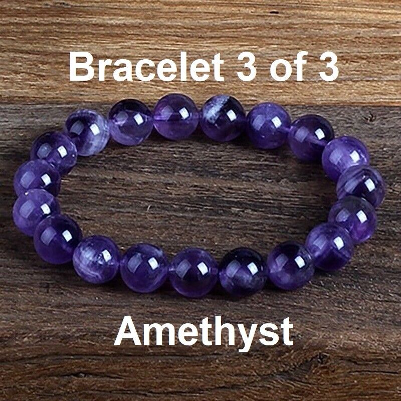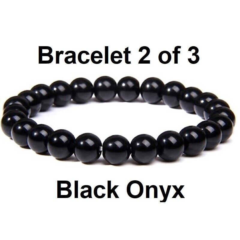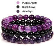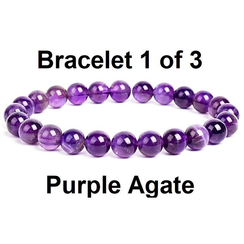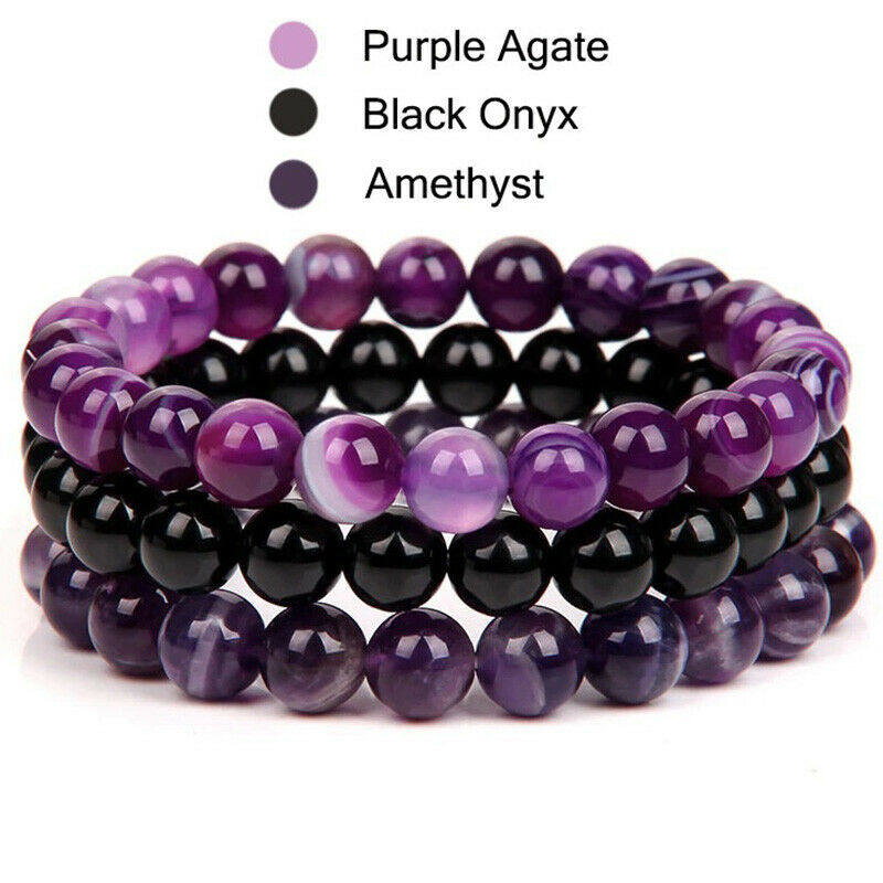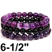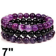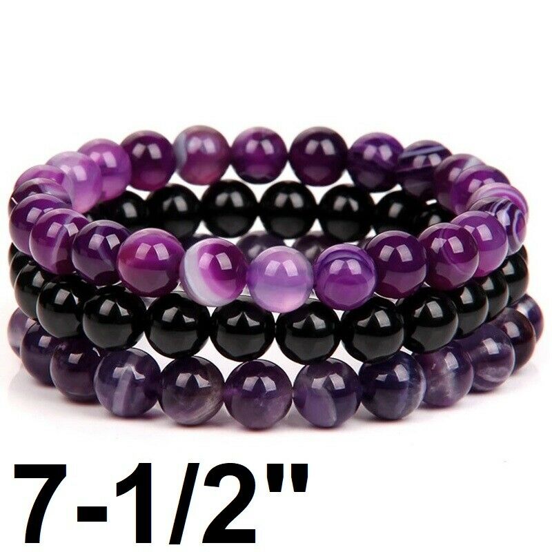 3 PcSet Womens Amethyst Black Onyx Purple Agate 6.5" 7" 7.5" Bracelets