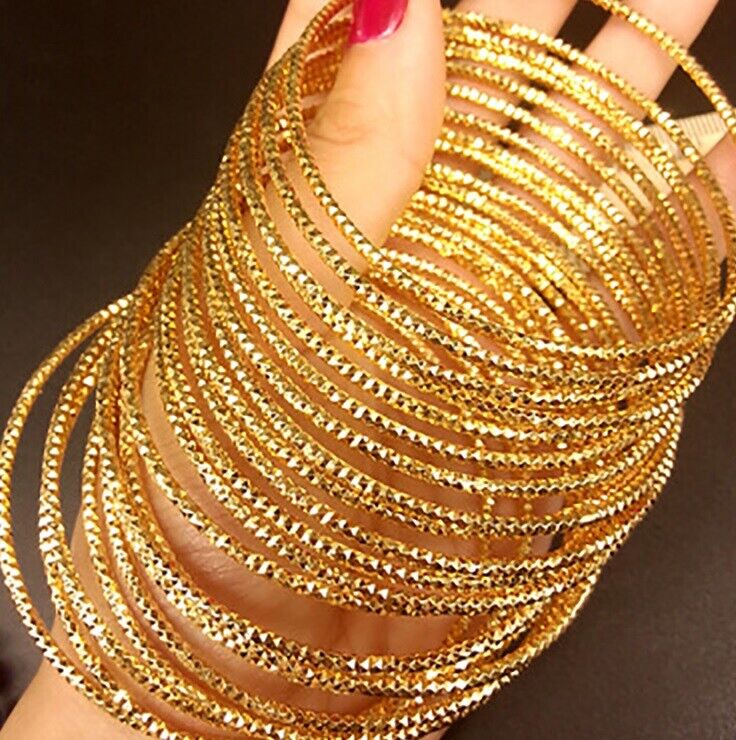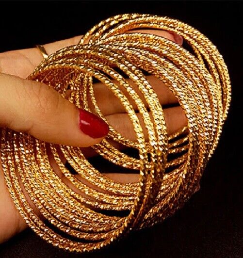 5 Pc Set 18k Yellow Gold Womens Stacking Bangles 2.6" Dia. 7-1/4" D721
