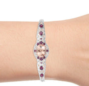 8" Morganique Quartz Orissa Garnet Solid 925 Sterling Silver Womens Bracelet