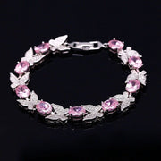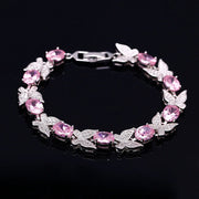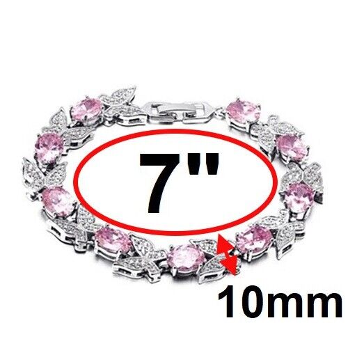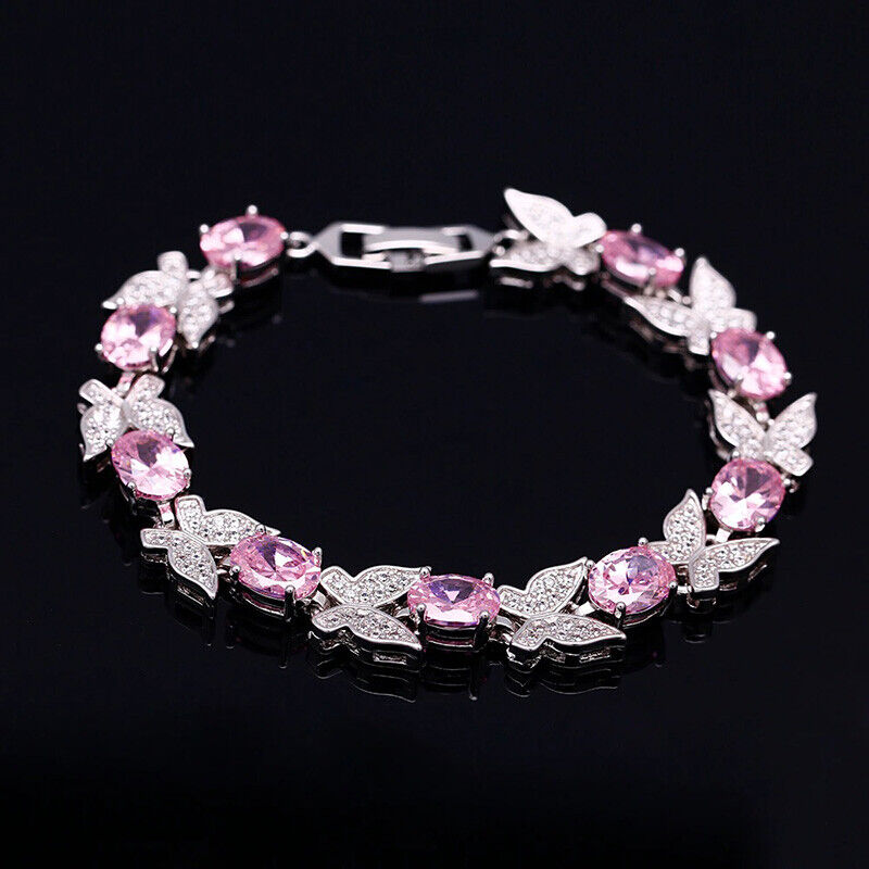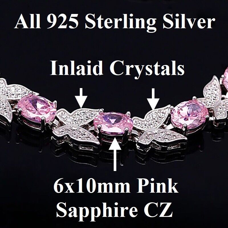 925 Sterling Silver Womens 7" Inlaid ButterflyCZ Pink Sapphire Tennis Bracelet