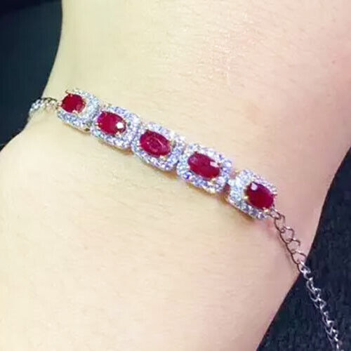 Women's Natural Mozambique Red Ruby 925 Sterling Silver Womens Bracelet D303