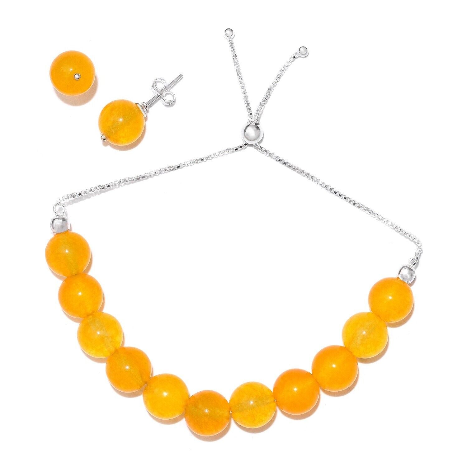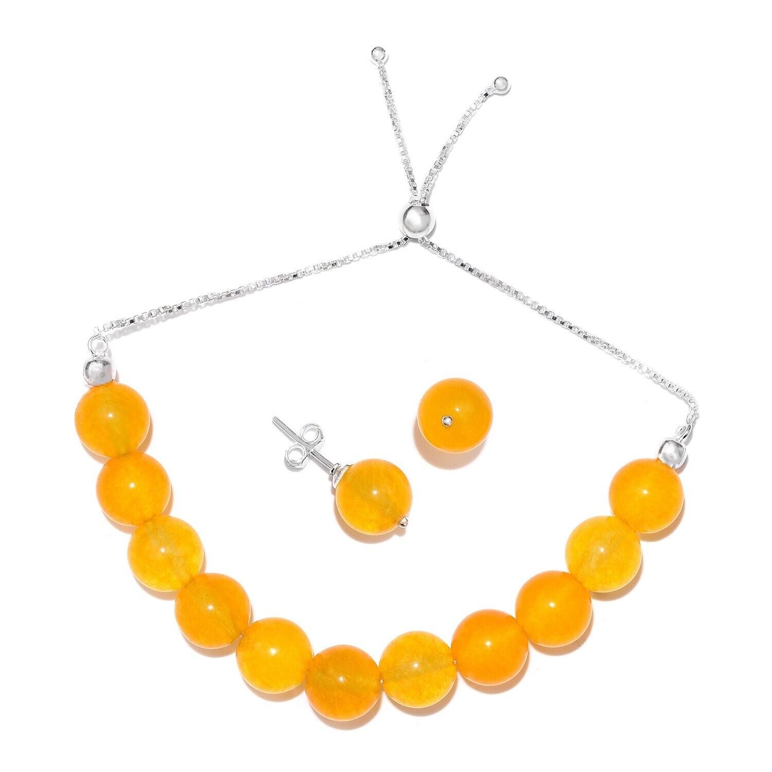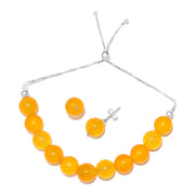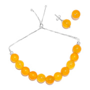 Description: Solid 925 Sterling Silver Adjustable Bracelet With Authentic Yellow Onyx Beads and Earrings