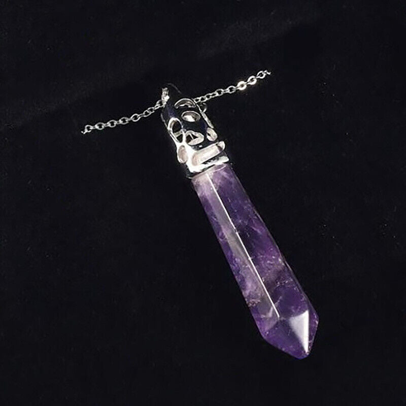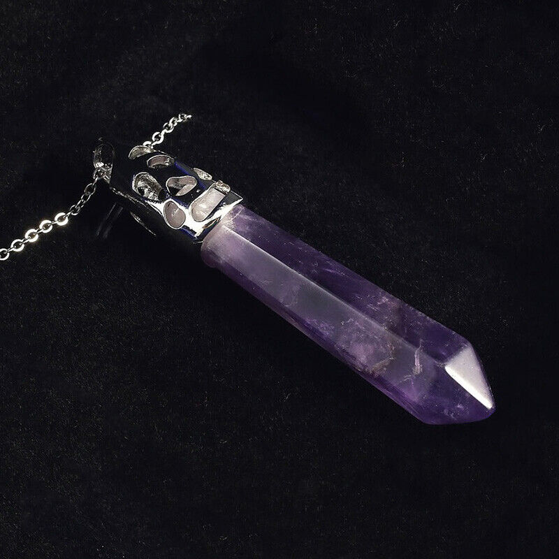 925 Sterling Silver Womens Chain 24" Necklace Amethyst Gemstone Pendant D839