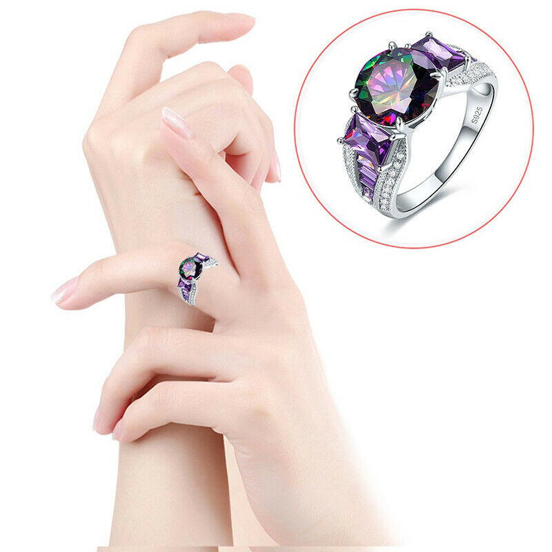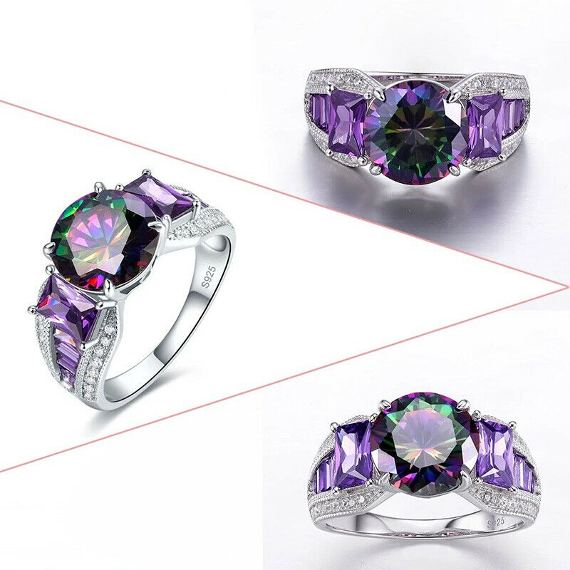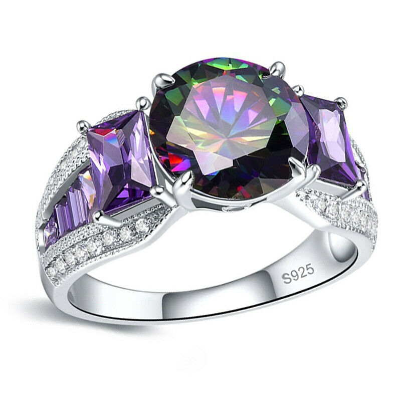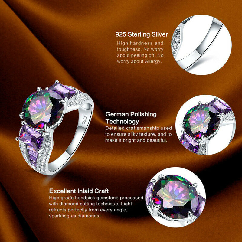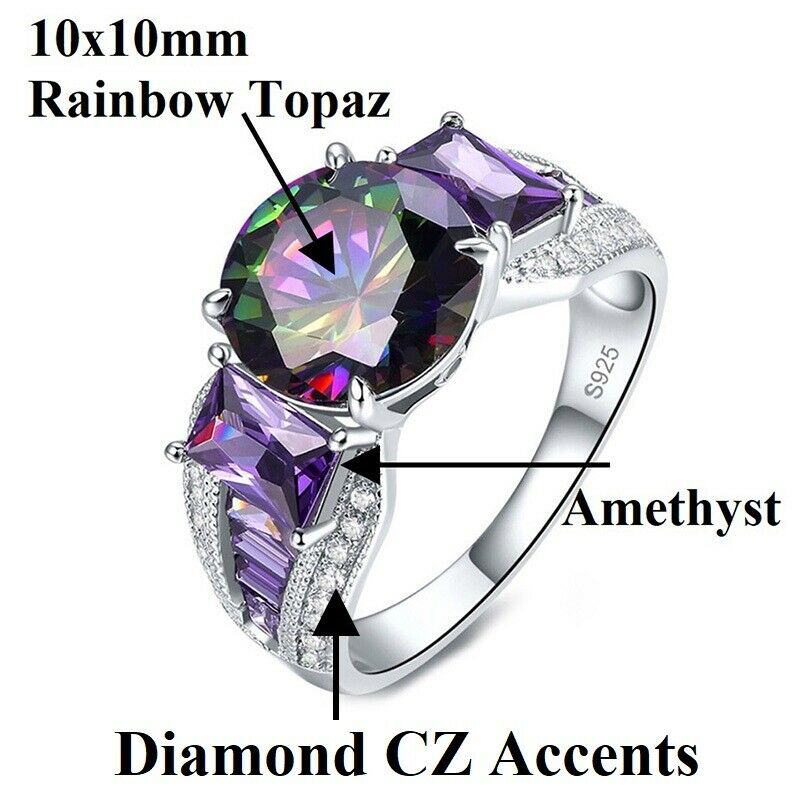 Description: Solid 925 Sterling Silver Women's Amethyst Rainbow Topaz Ring
