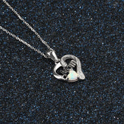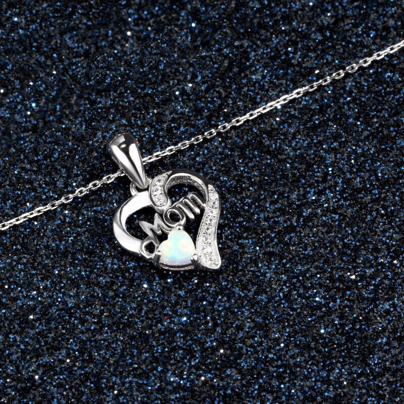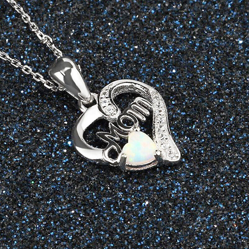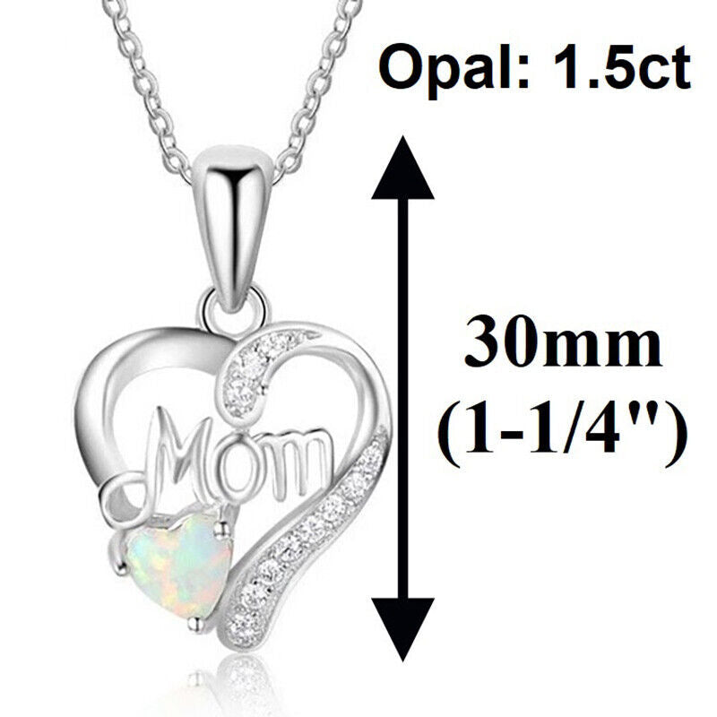Women's 925 Sterling Silver Mom Chain White Fire Opal Pendant Necklace D876