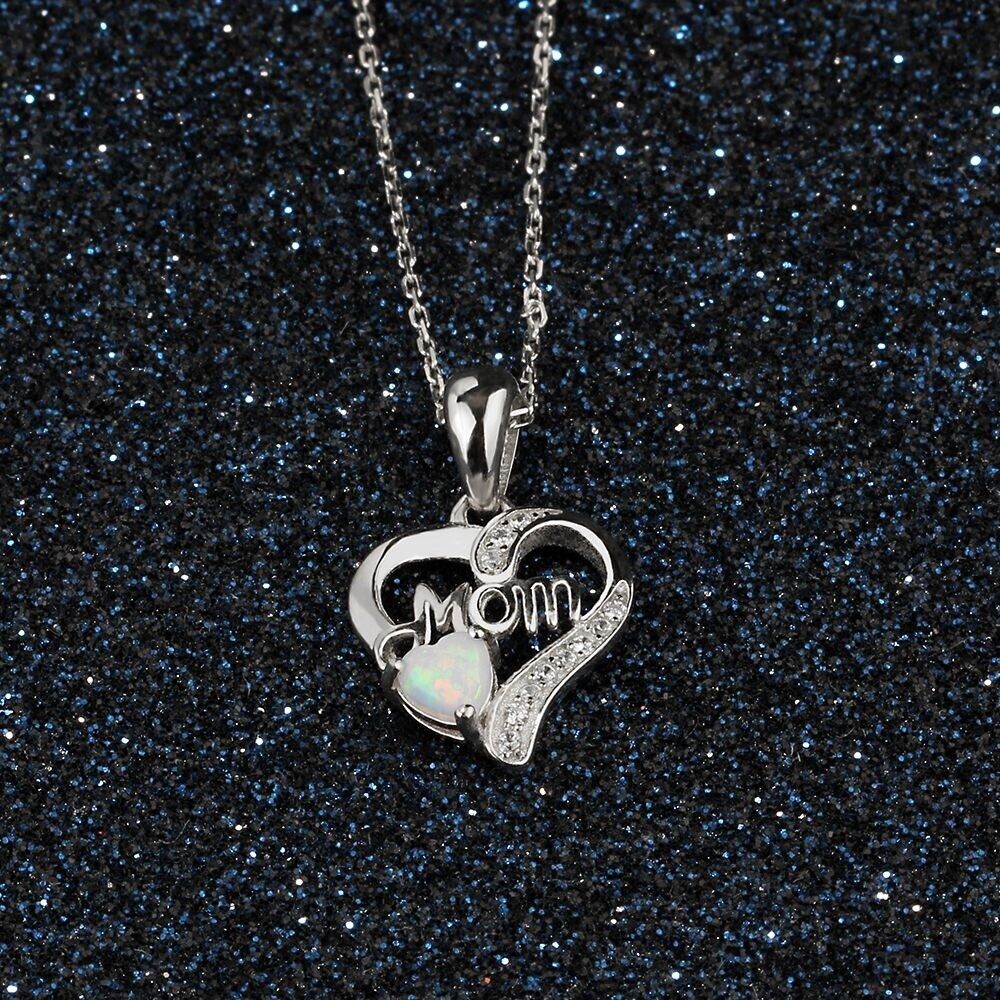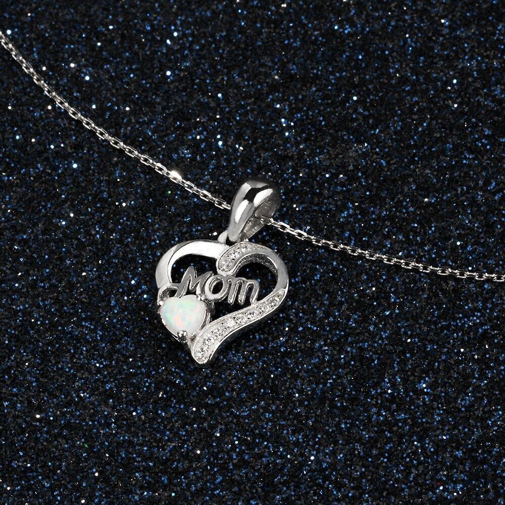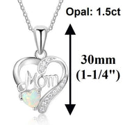 Women's 925 Sterling Silver Mom Mother's Chain Opal Pendant 18" Necklace