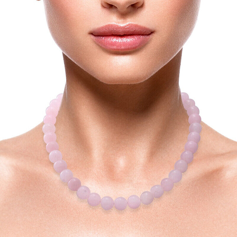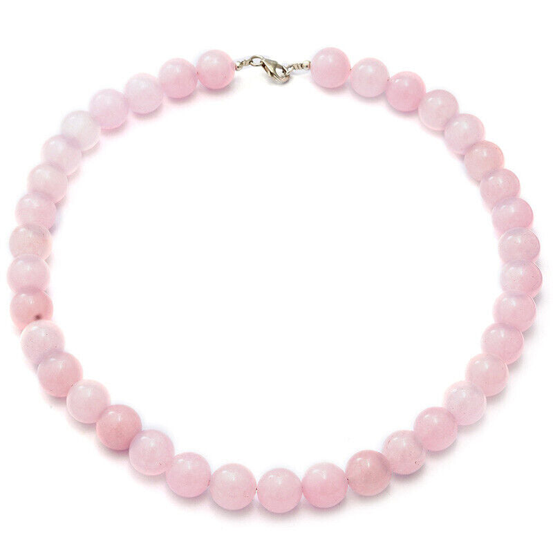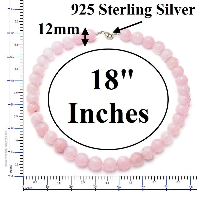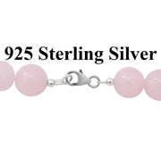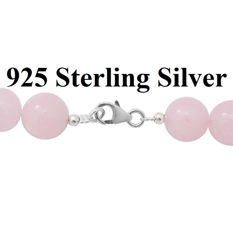 Womens 925 Sterling Silver Natural Pink 12mm Rose Quartz Necklace w Gift Pk D827