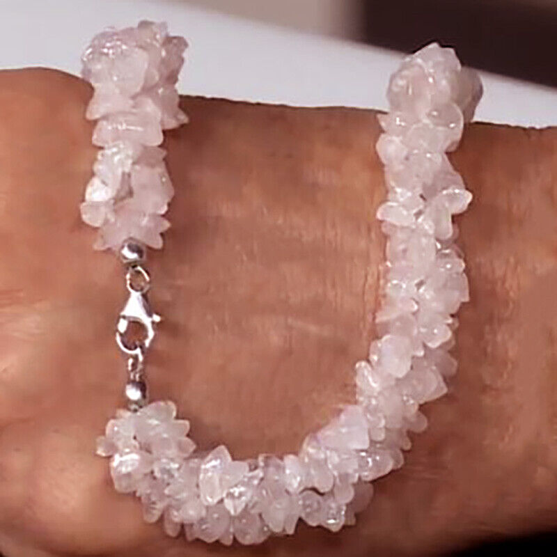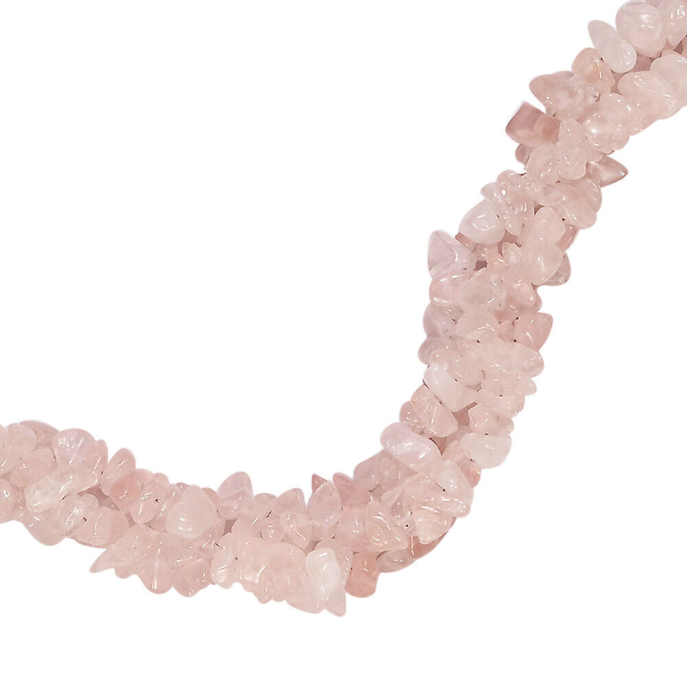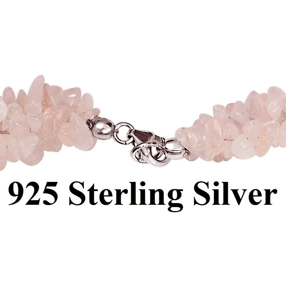 Womens 925 Sterling Silver Triple Layer Natural Pink Rose Quartz Necklace D821