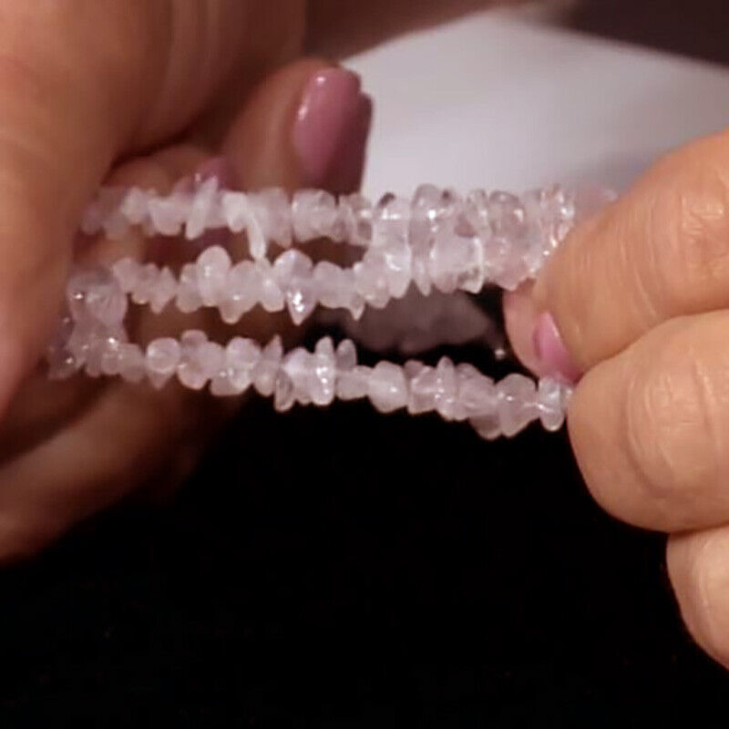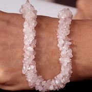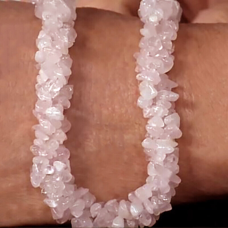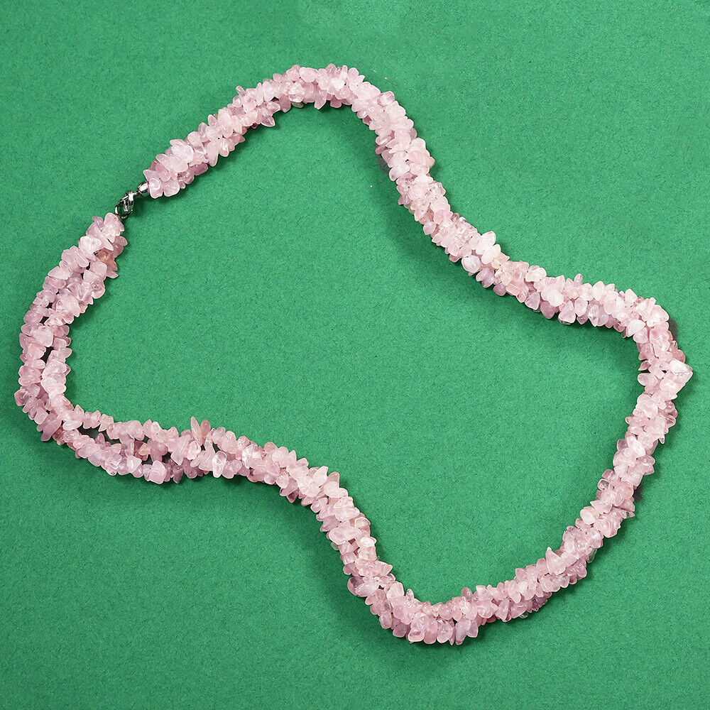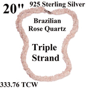 Description: Womens 925 Sterling Silver Triple Layer Natural Pink Rose Quartz 20" Necklace