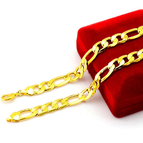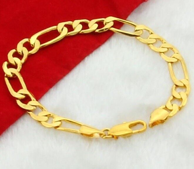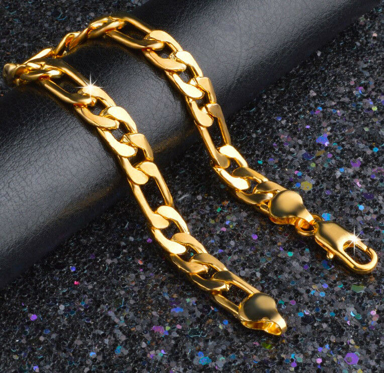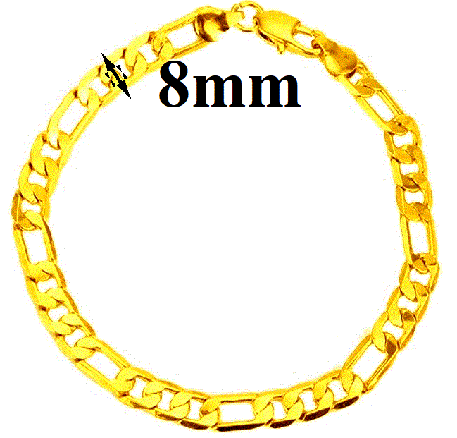 18k Gold Bracelets Men's Bold Figaro Style Cuban Link GF Chain w Gift Pkg D471