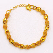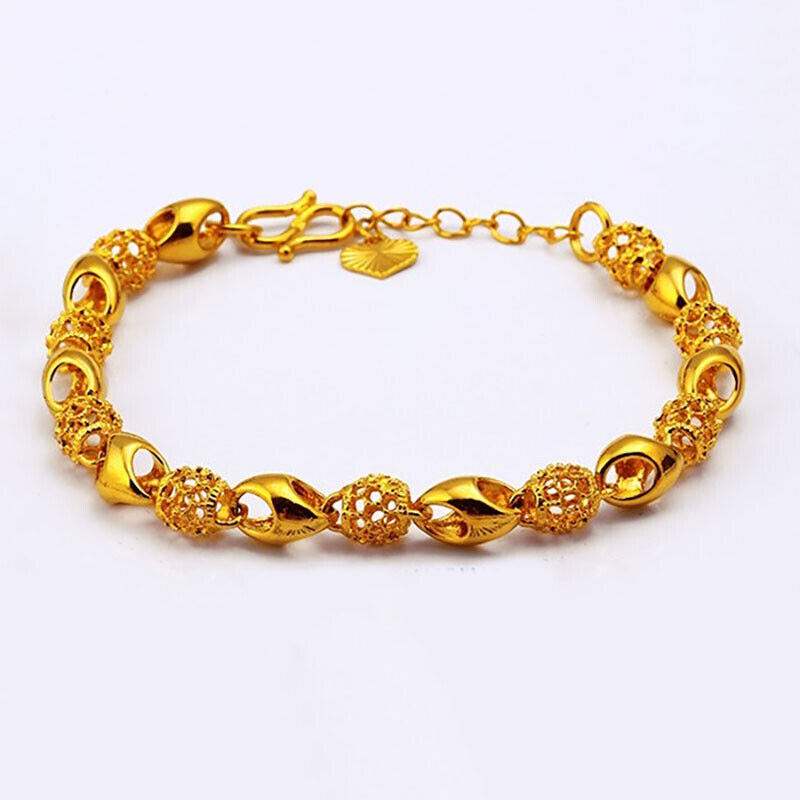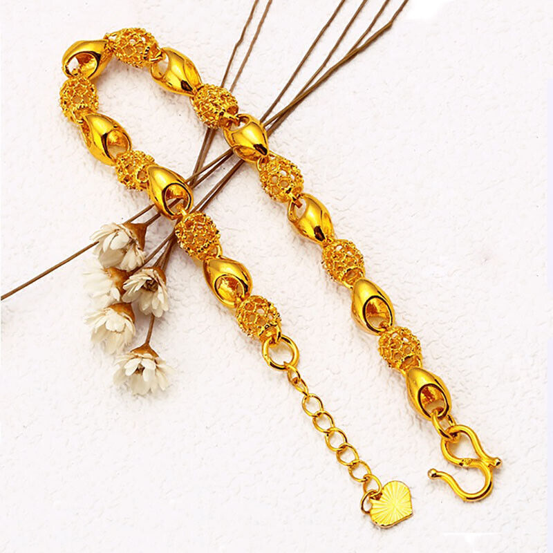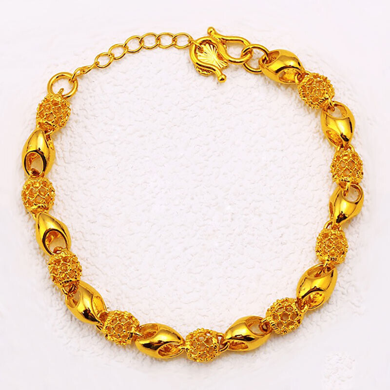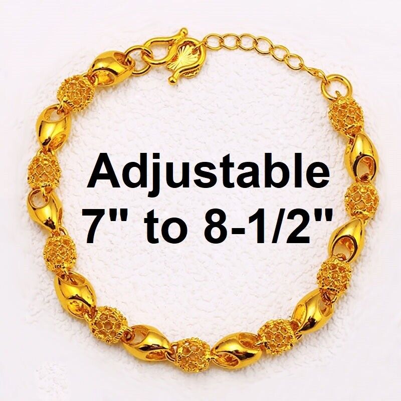 18K Gold Women's Elegant Beaded Adjusts 7" to 8.5" Link Chain Bracelet D898
