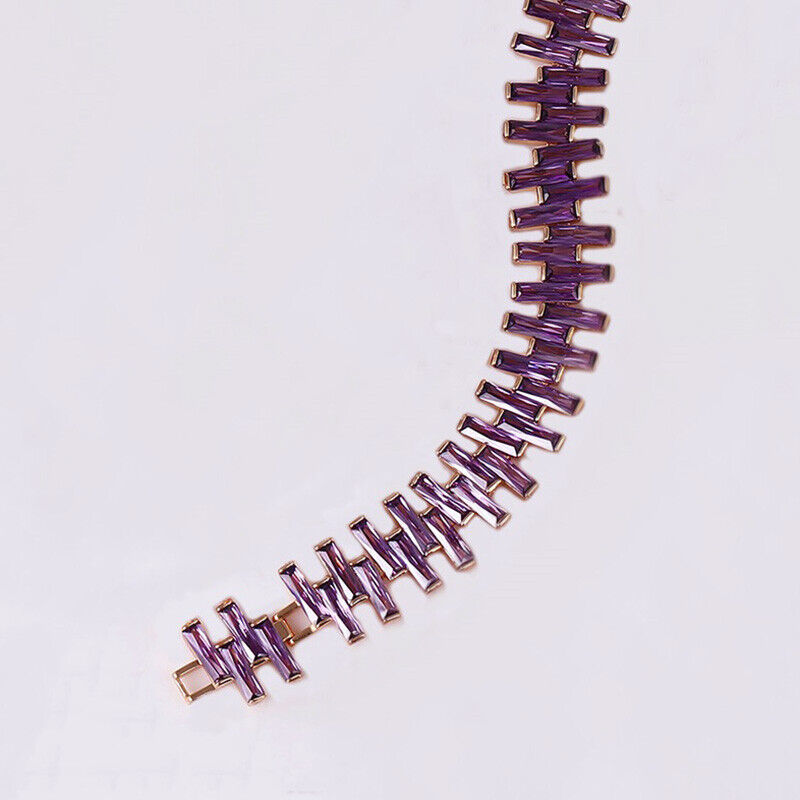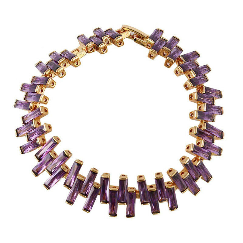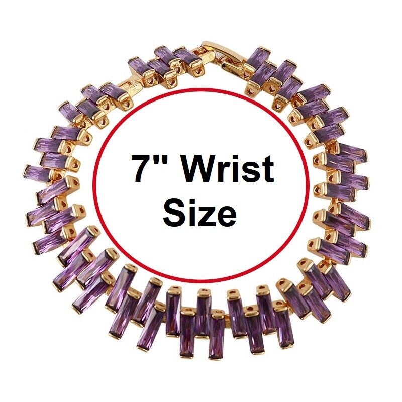 18K Yellow Gold Women's Natural Purple Amethyst Small 7" Link Tennis Bracelet