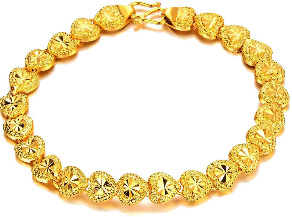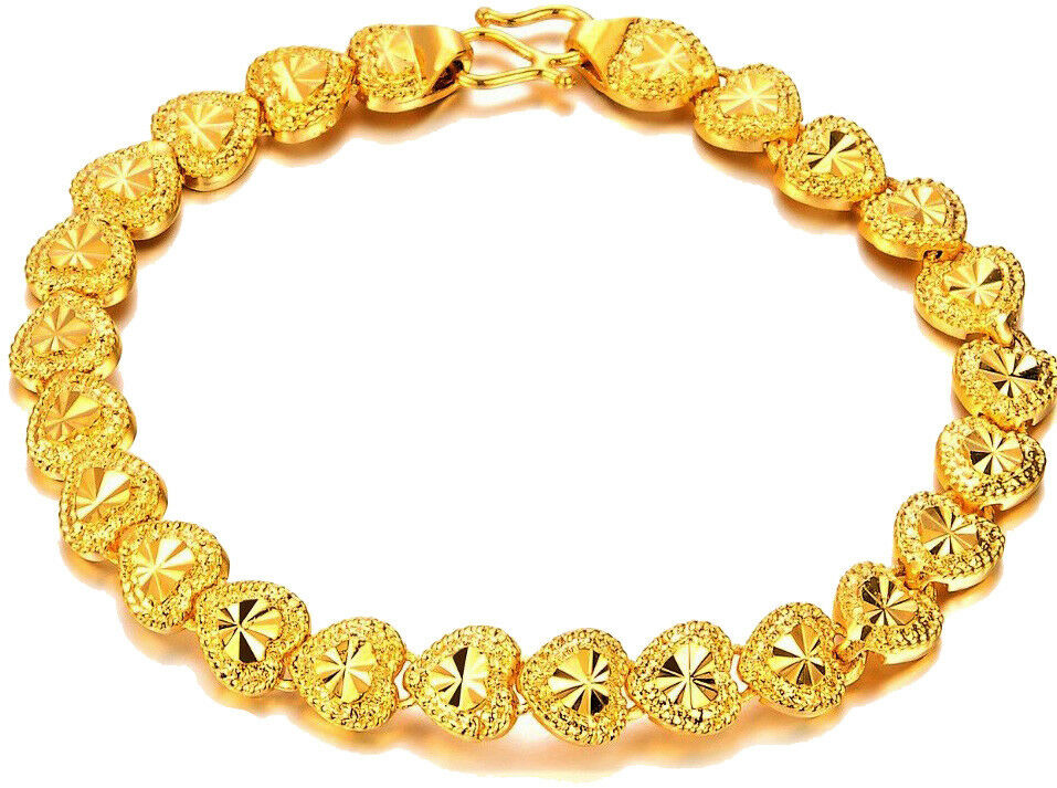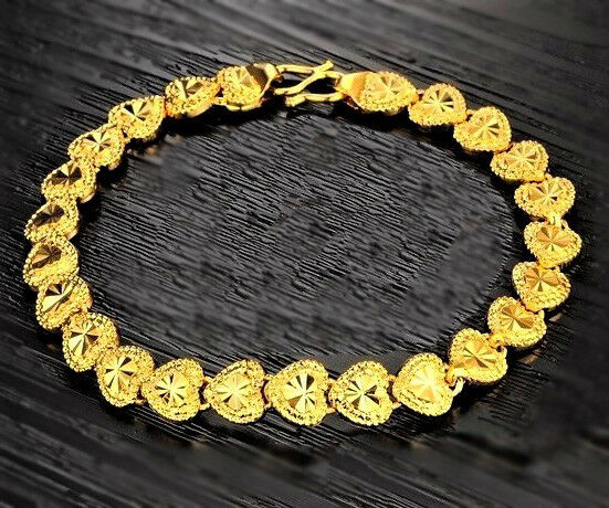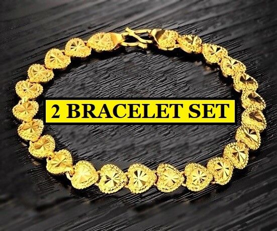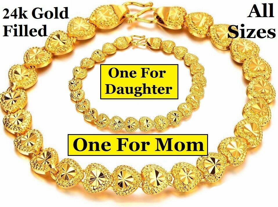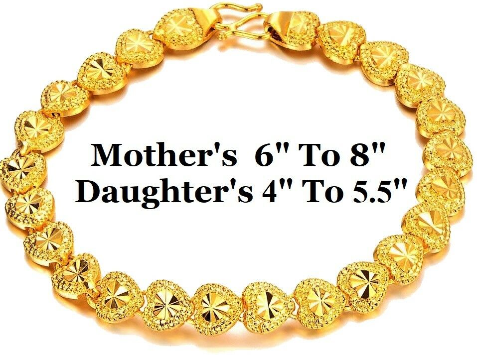 2 Pc Set Mother Daughter 24k Yellow Gold Linked Chain Hearts Bracelet +Gift D149