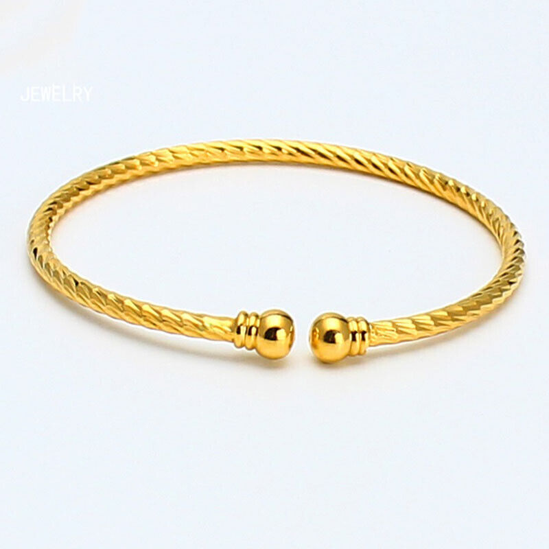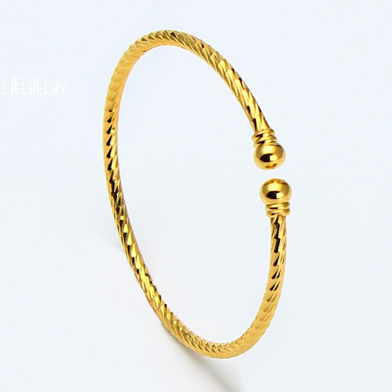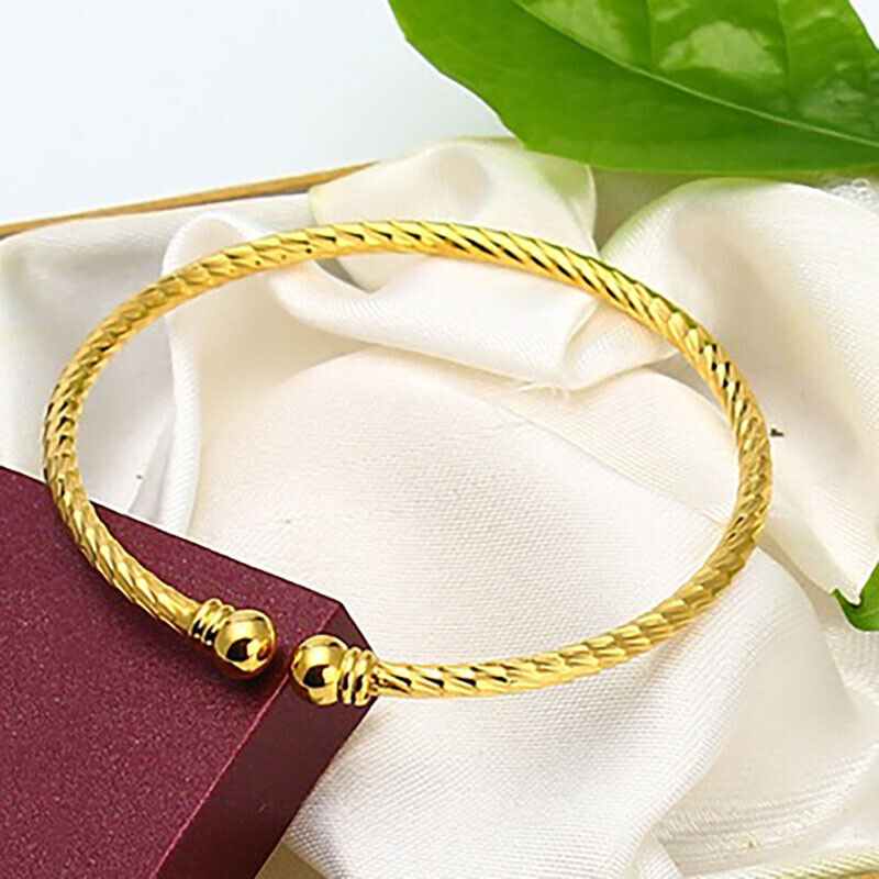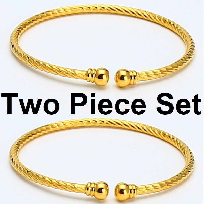 2 PcSet Womens 18k Gold Elegant Diamond Cut Cuff Bracelet Bangle w GiftPkg