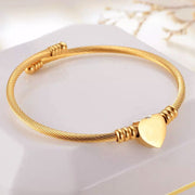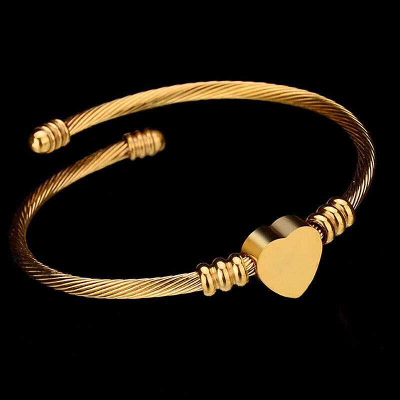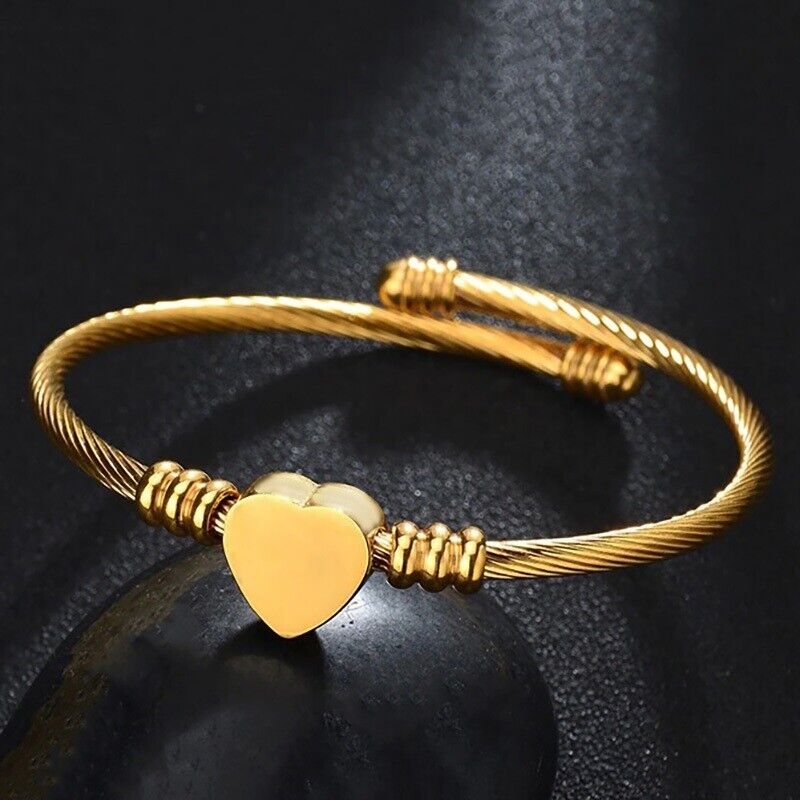 24k Yellow Gold Women's Opulent Love Heart Bracelet Bangle Adjustable 7" D998