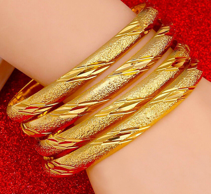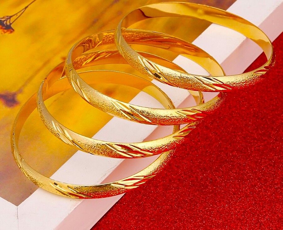 New 18k Gold Bracelets Bangle Womens Diamond Cut Design Opening w Gift Pkg D223X