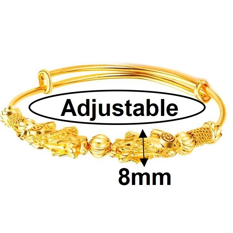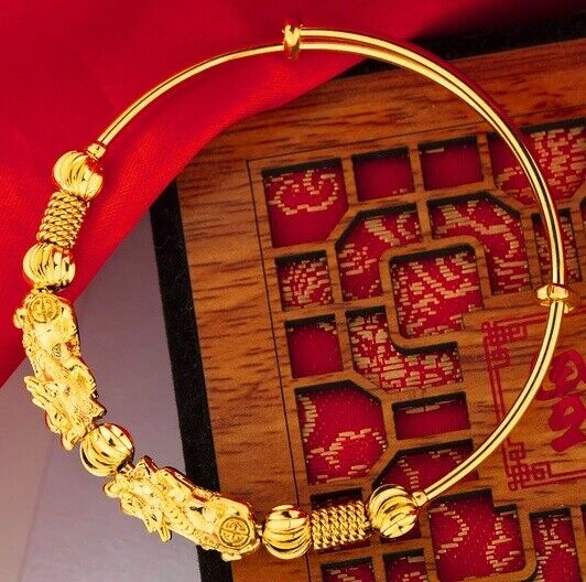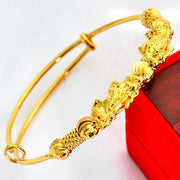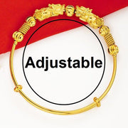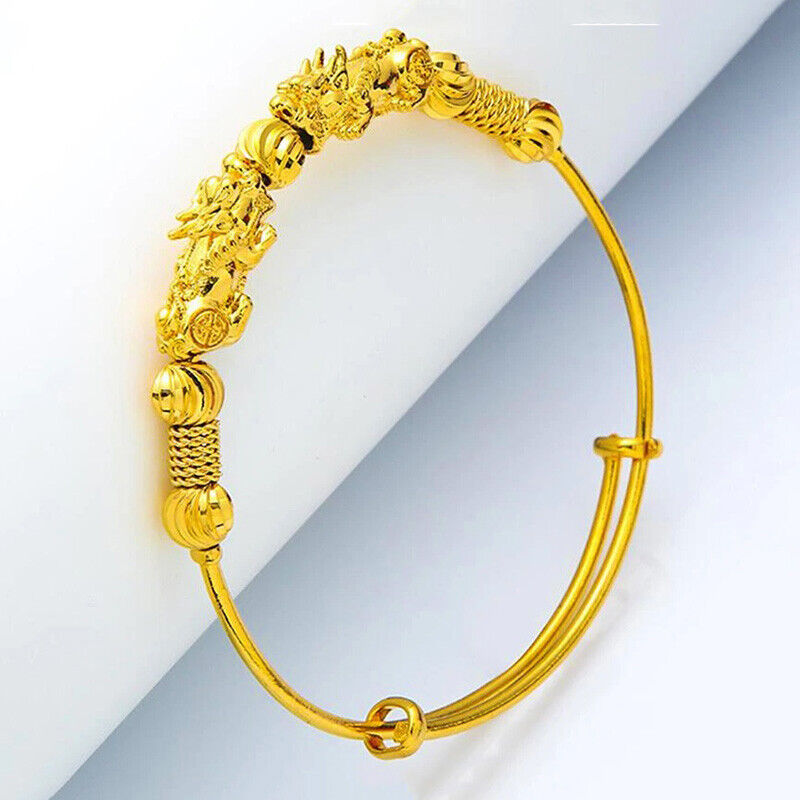 Womens 24k Gold Feng Shui Pixiu Chimera Lion Adjustsable Bracelet Bangle D791