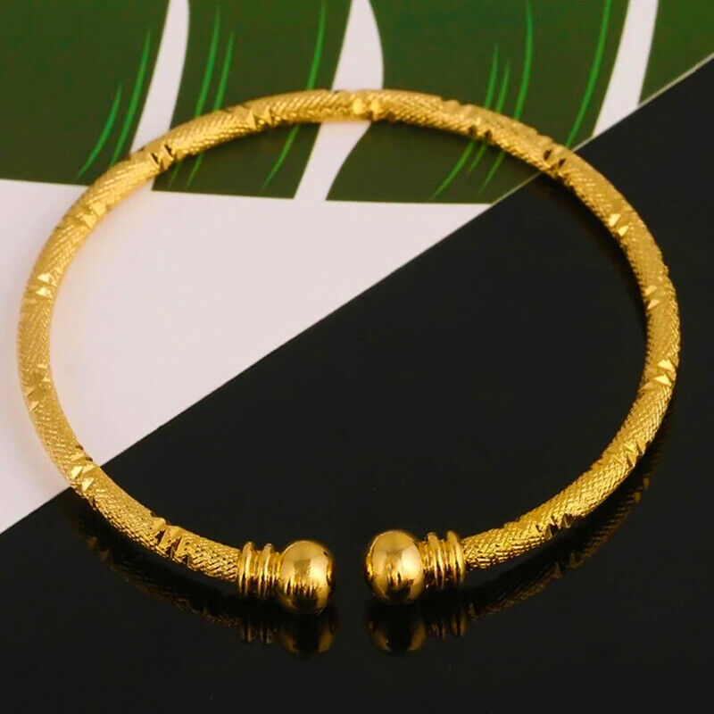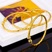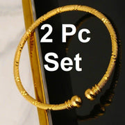 2 Pc 18k Yellow Gold Womens Large 7" to 8" Adjustable Cuff Bangles w GiftPg D712