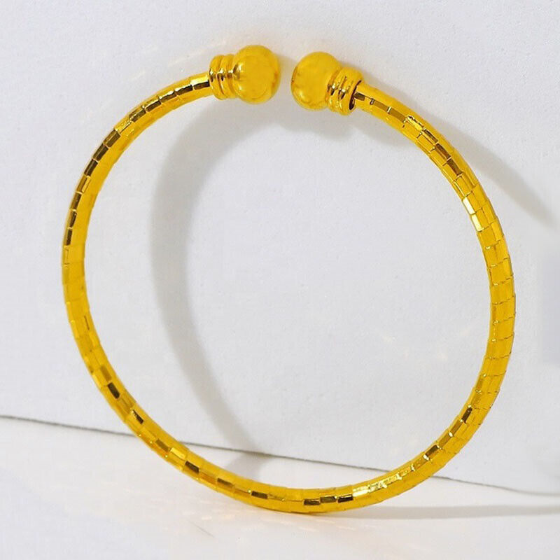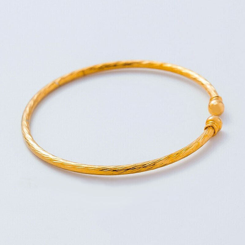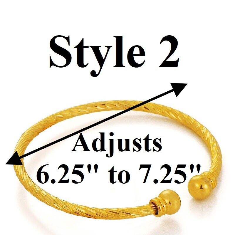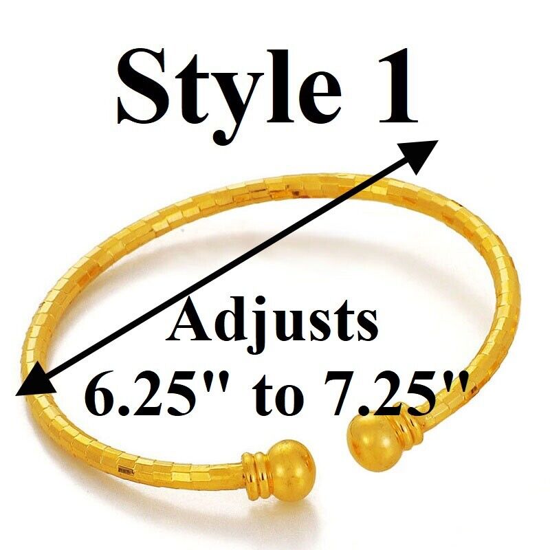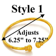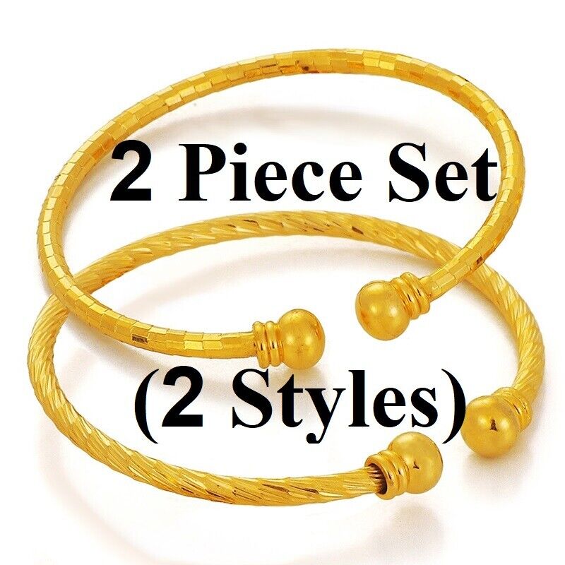 2 Pc 18k Yellow Gold Womens Small 6.25" to 7.25" Adjustable Cuff Bangles D950