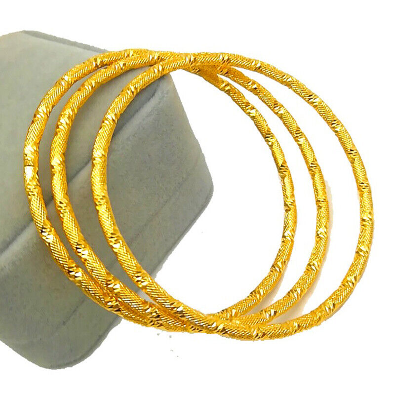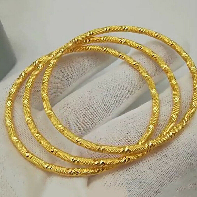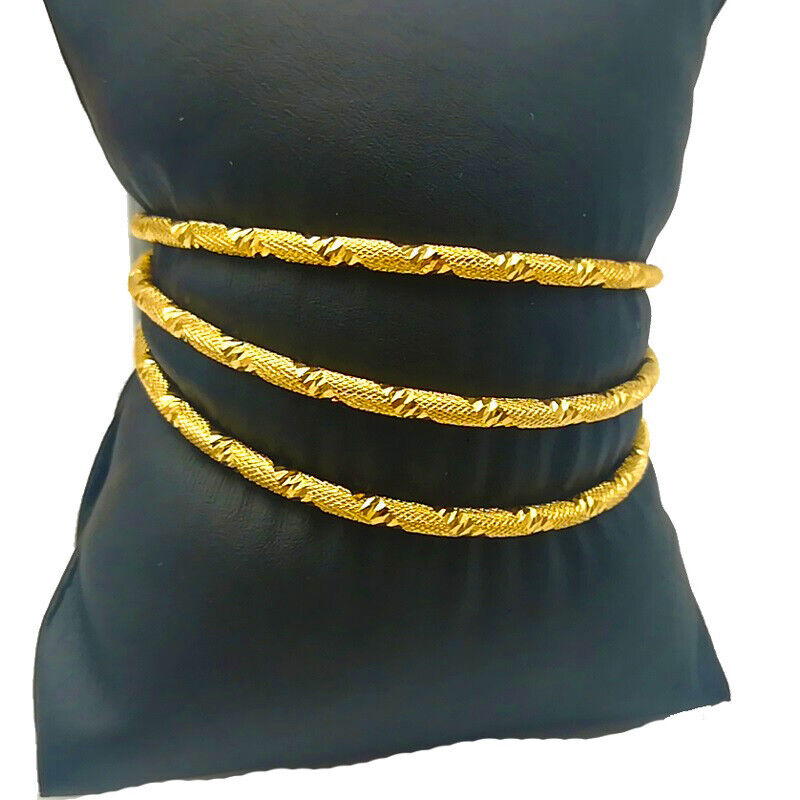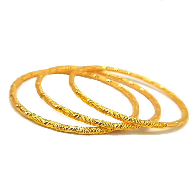 3 PcSet 18k Gold Small Womens Teens SlipOn Stacking Bangles 2-1/2" Dia D985