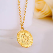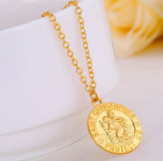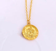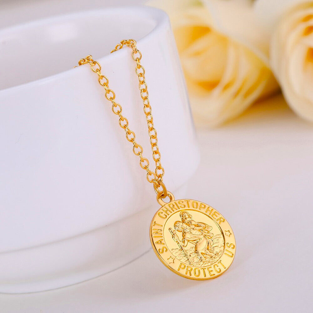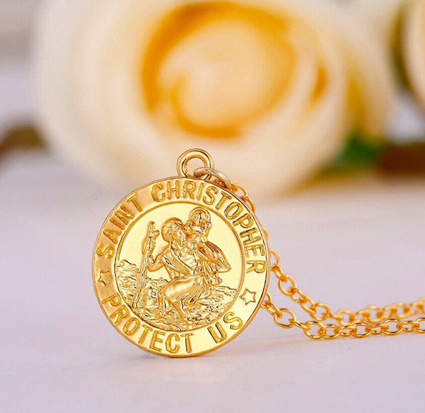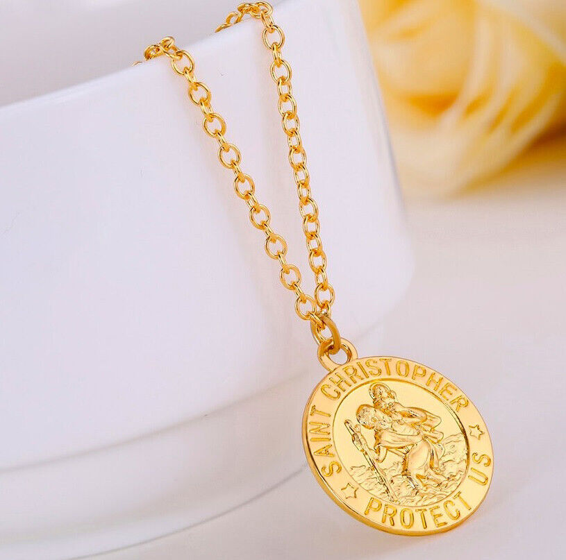 18k Gold Mens Rolo Link Chain 20" Necklace, St. Christopher Pendant w Gift Pkg