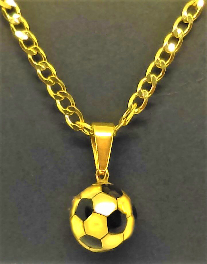 18k Gold Soccer Ball With Women's Men's 20" Curb Link Chain Necklace