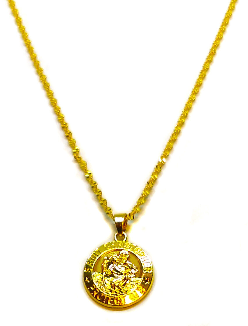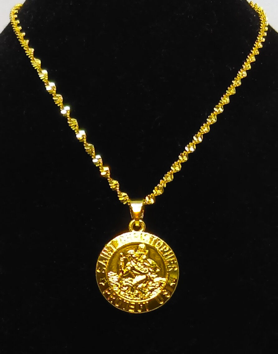 18k Gold St. Christopher Pendant With 24" Water Wave Snake Necklace Set +GiftPkg
