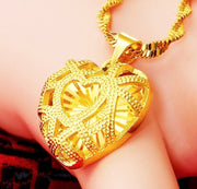18k Gold Womens Heart Pendant With 18" Link Chain Necklace w Gift Pk D740