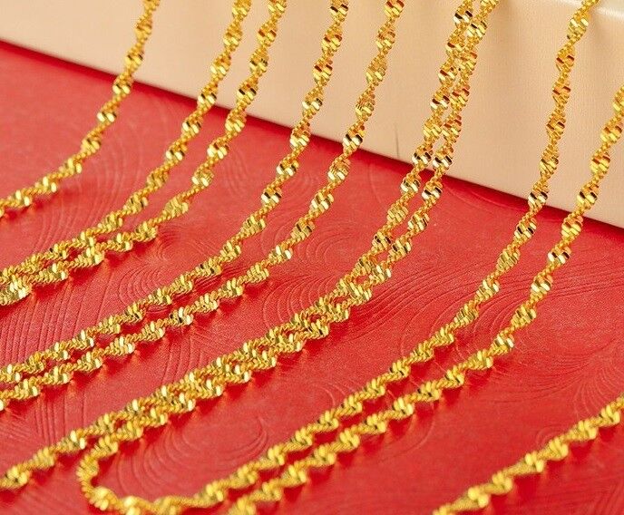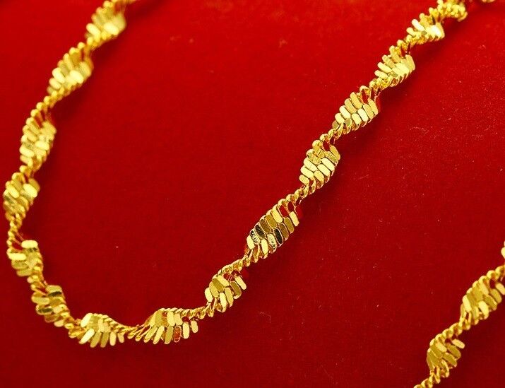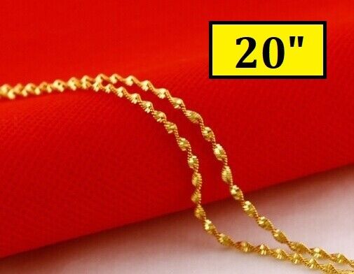18k Yellow Gold Mens Womens Elegant 20" Necklace Wave Snake Link Chain + GiftPkg