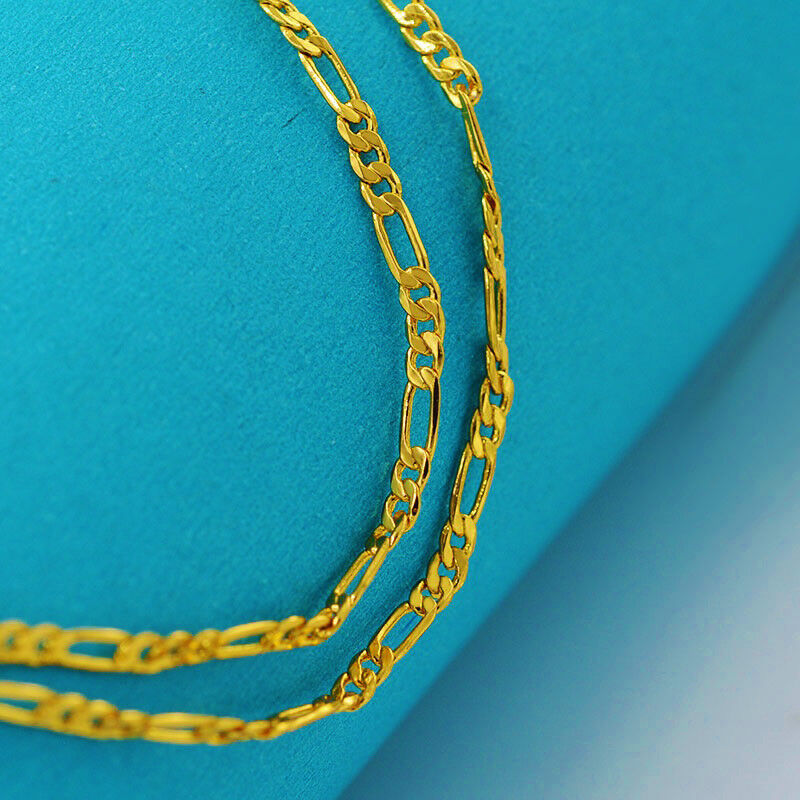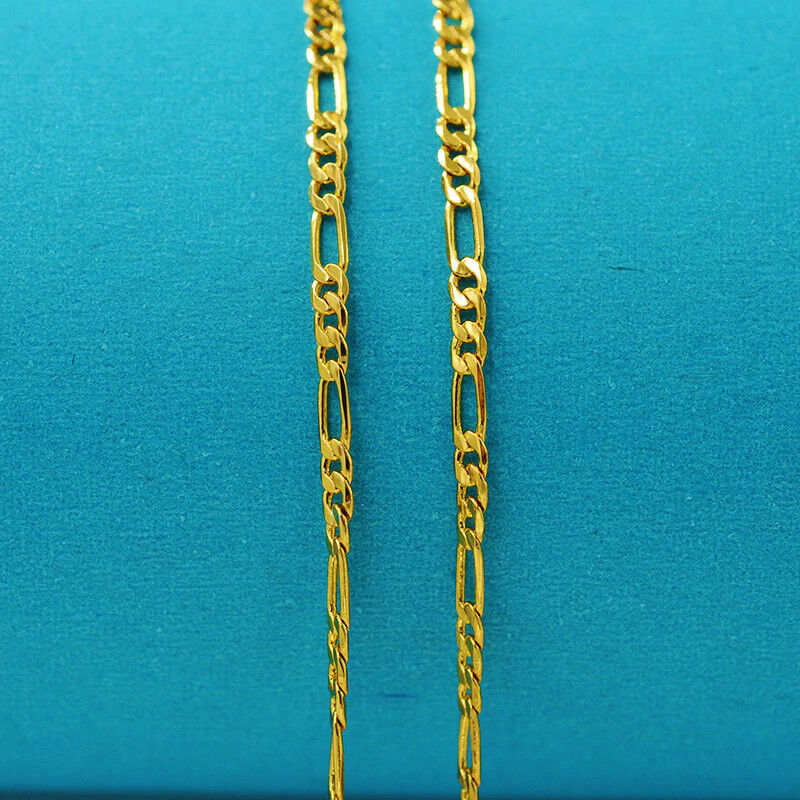 18k Yellow Gold Necklace Women's Men's Figaro Cuban Style Chain Link 18" D400