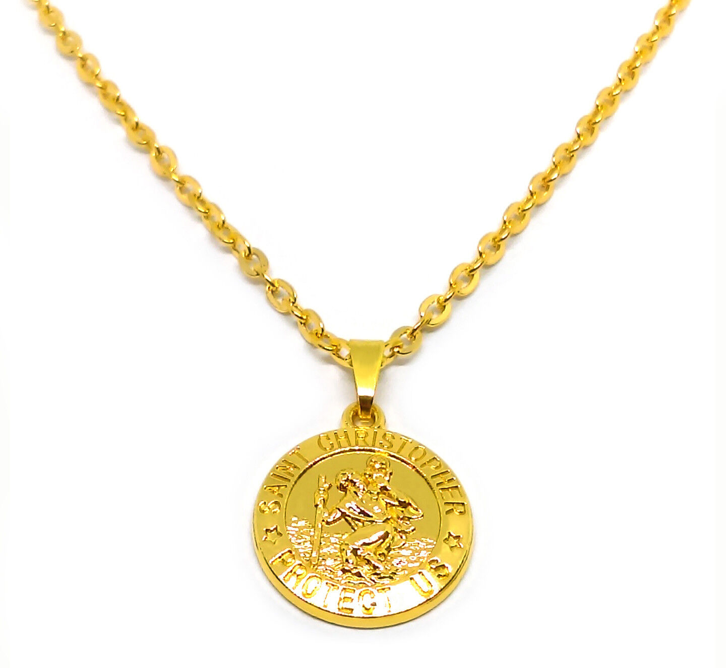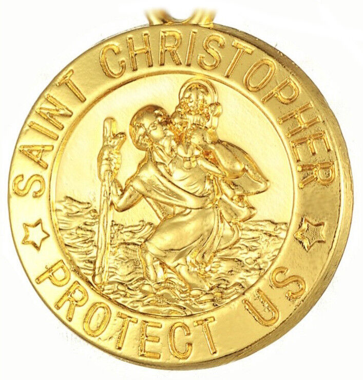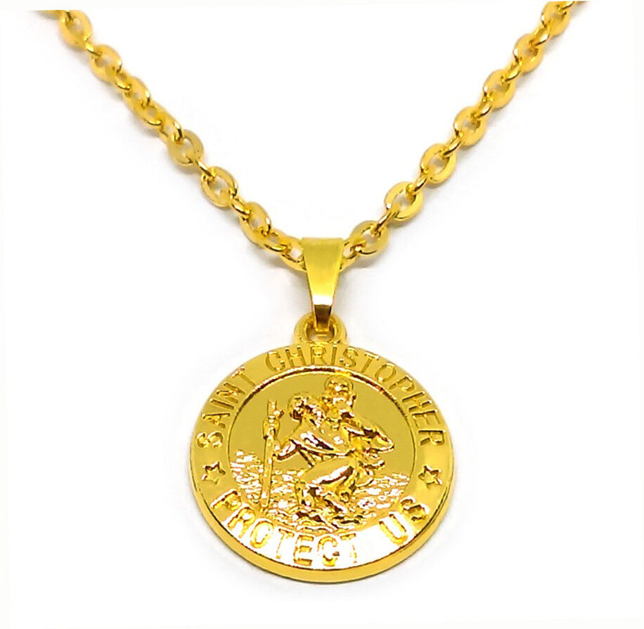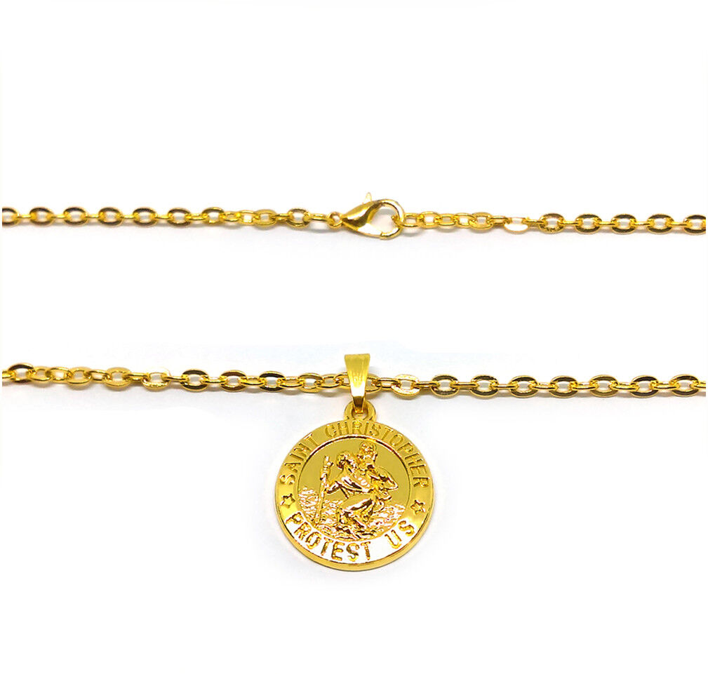 18k Yellow Gold Rolo Link Chain 18" Necklace - St. Christopher Pendant wGiftPkg