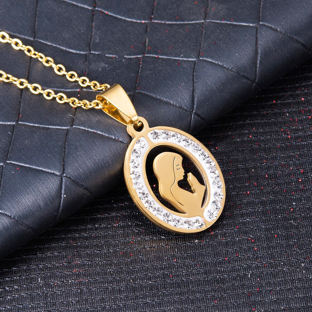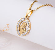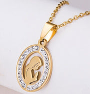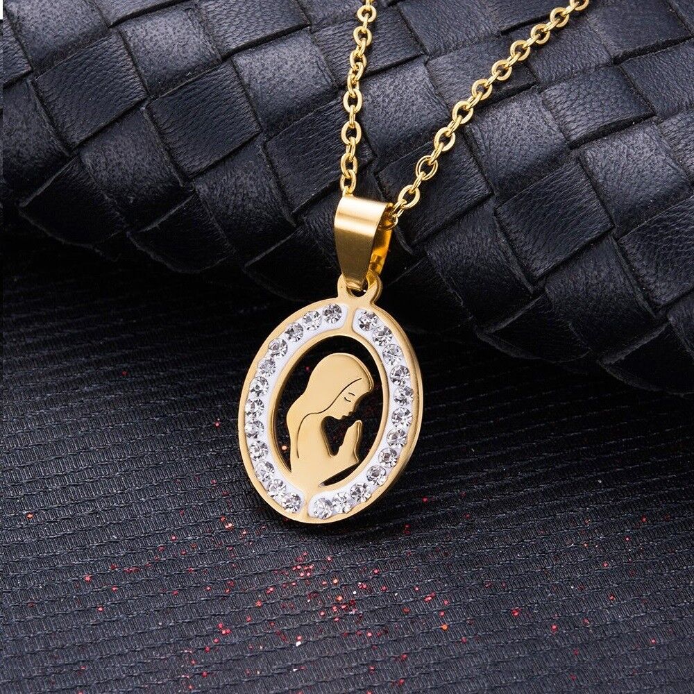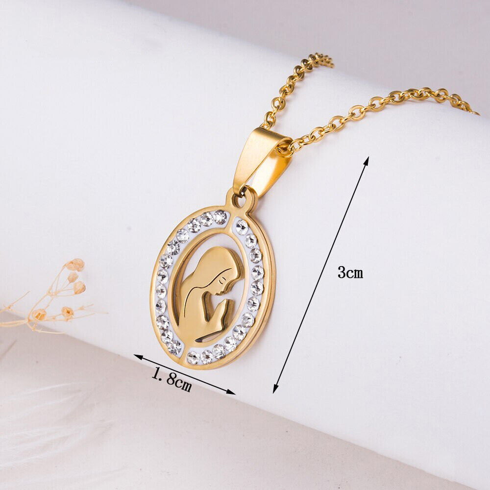 18k Yellow Gold Womens Lady's Chain Necklace, Virgin Mary Pendant Guadalupe D673
