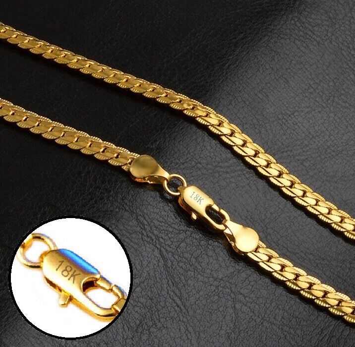 18k Yellow Gold Women's Men's 5mm Wide Link Chain 20" Necklace w Gift Pkg D517G
