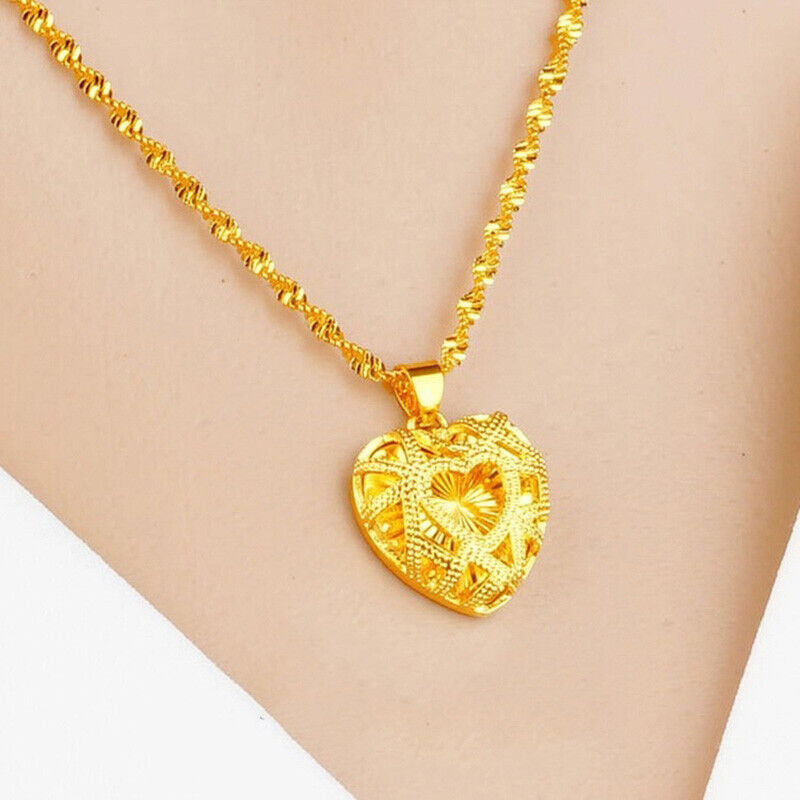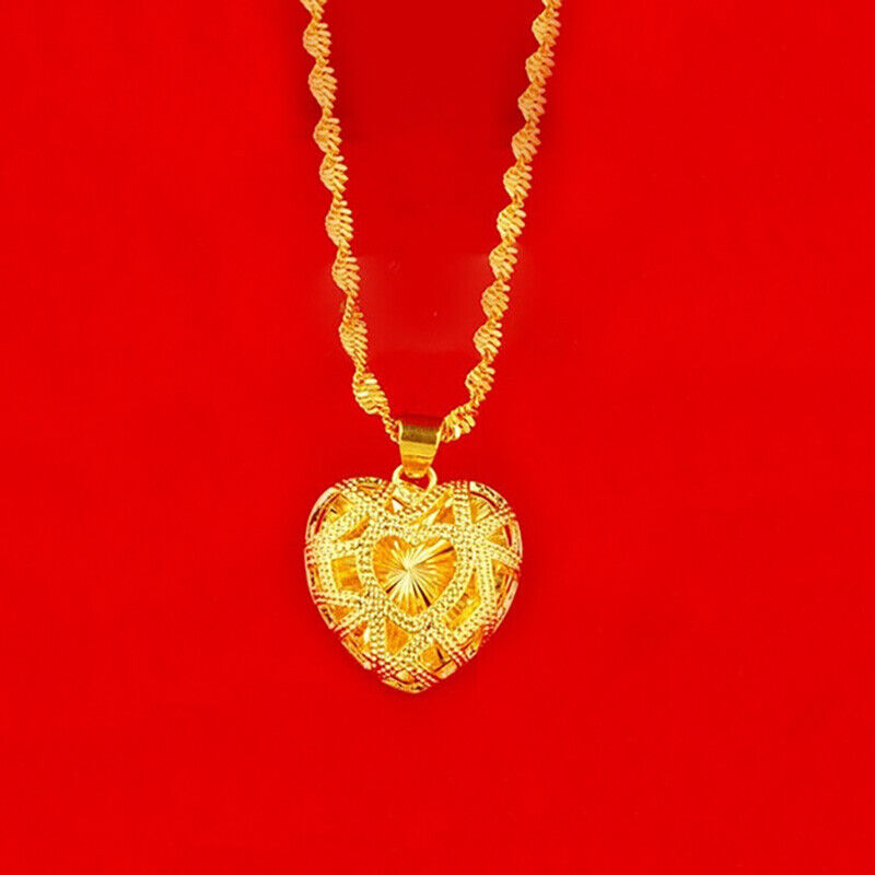 18k Yellow Gold Womens Mothers Heart 18" Link Chain Necklace w Gift Pkg D740