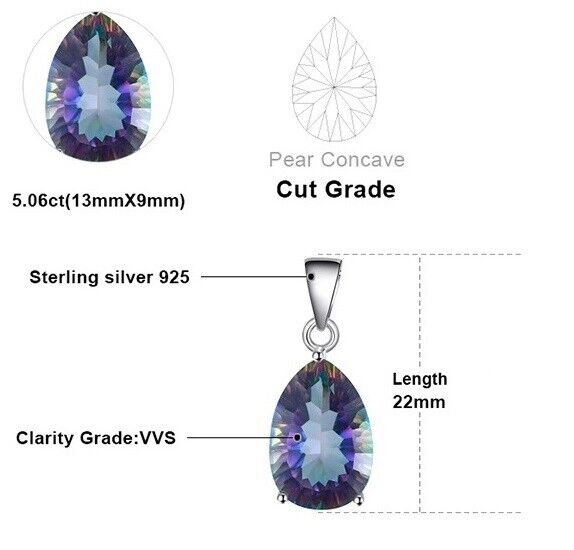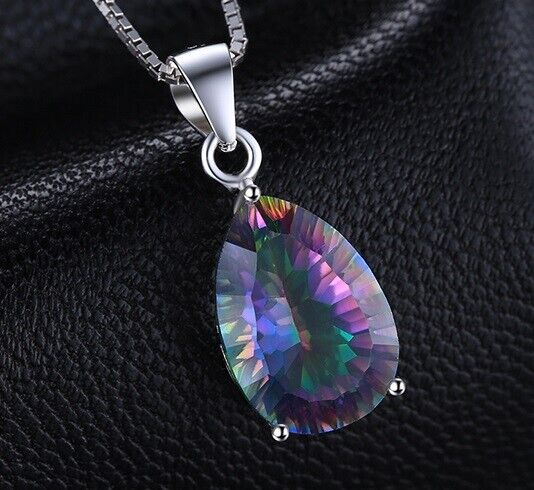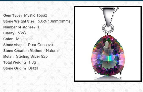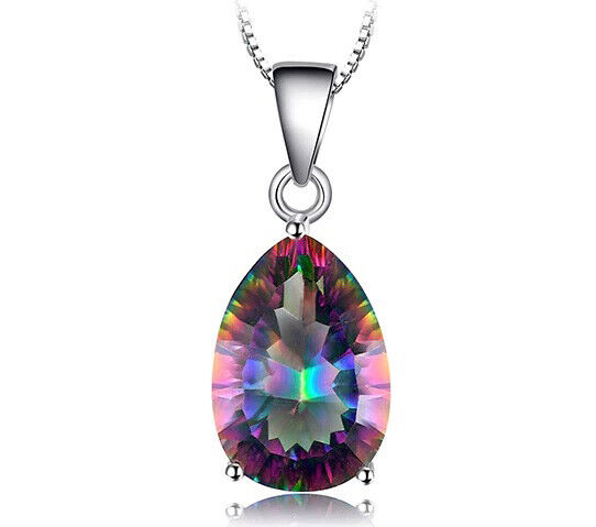 925 Sterling Silver Womens Link Chain Necklace Rainbow Fire Topaz wGiftPk D676J