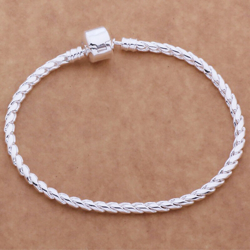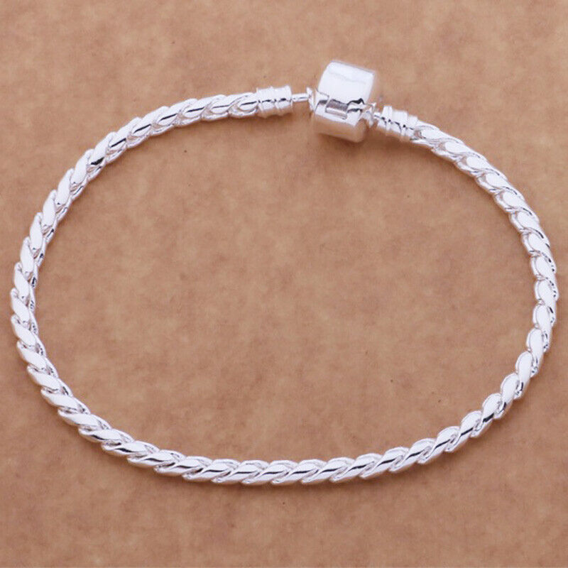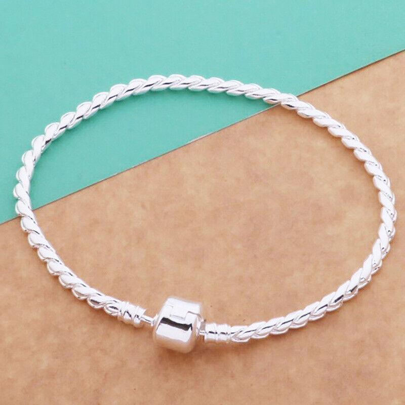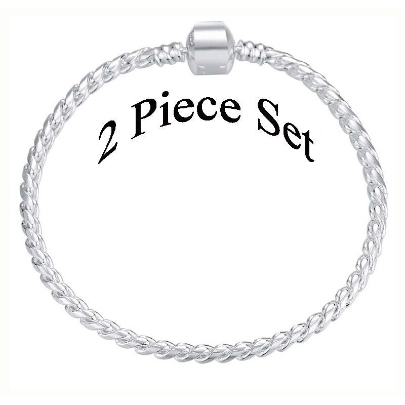 2 Pc 925 Sterling Silver Womens Twist Snake Bracelets Fit Pan European Bead D476