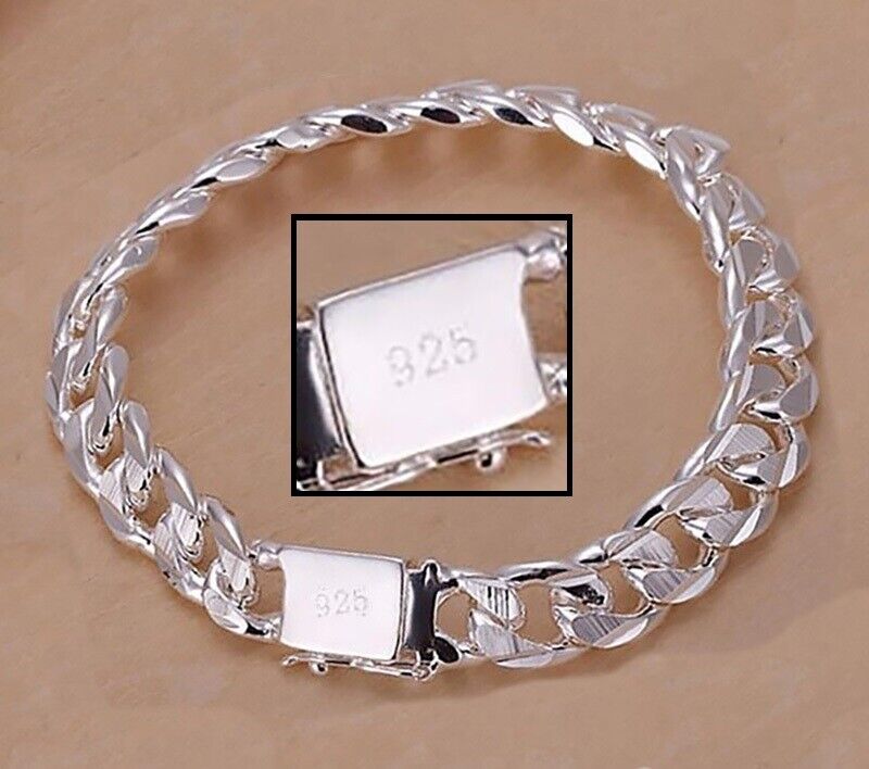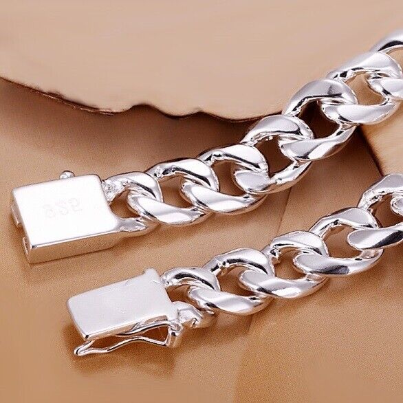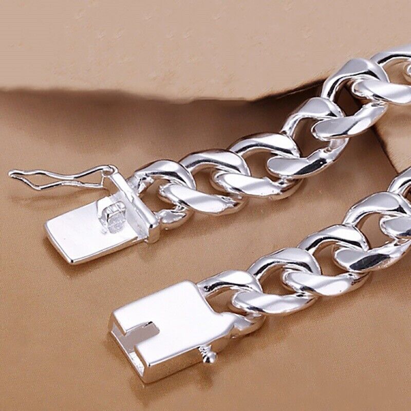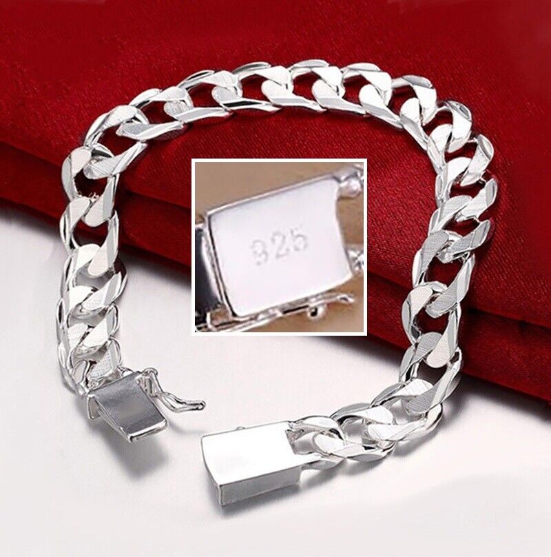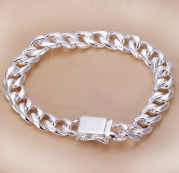 925 Sterling Silver Cuban Link Chain Womens 10mm Bracelet w Gift Pkg D454