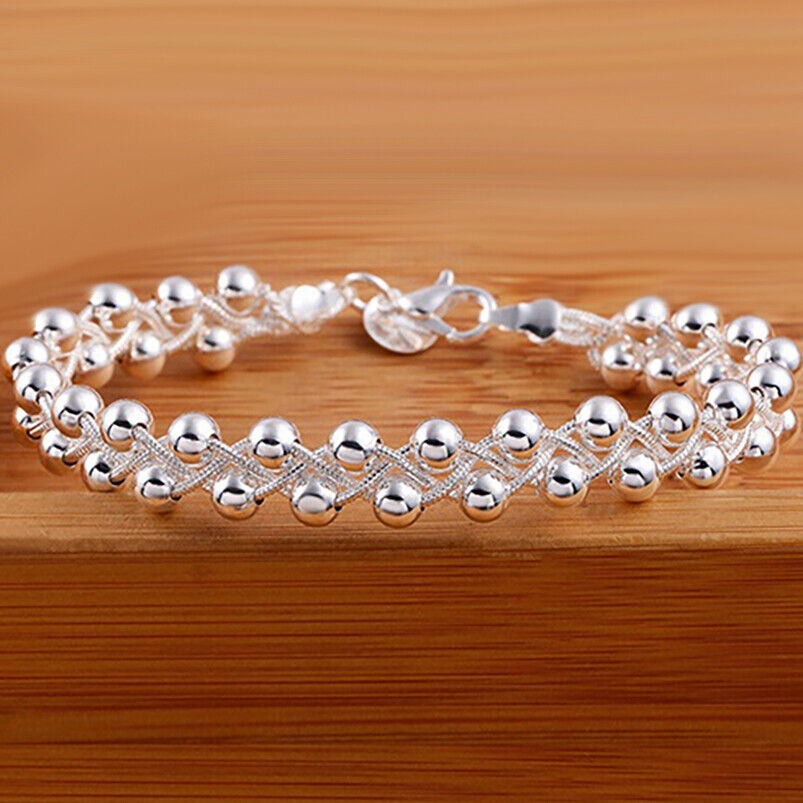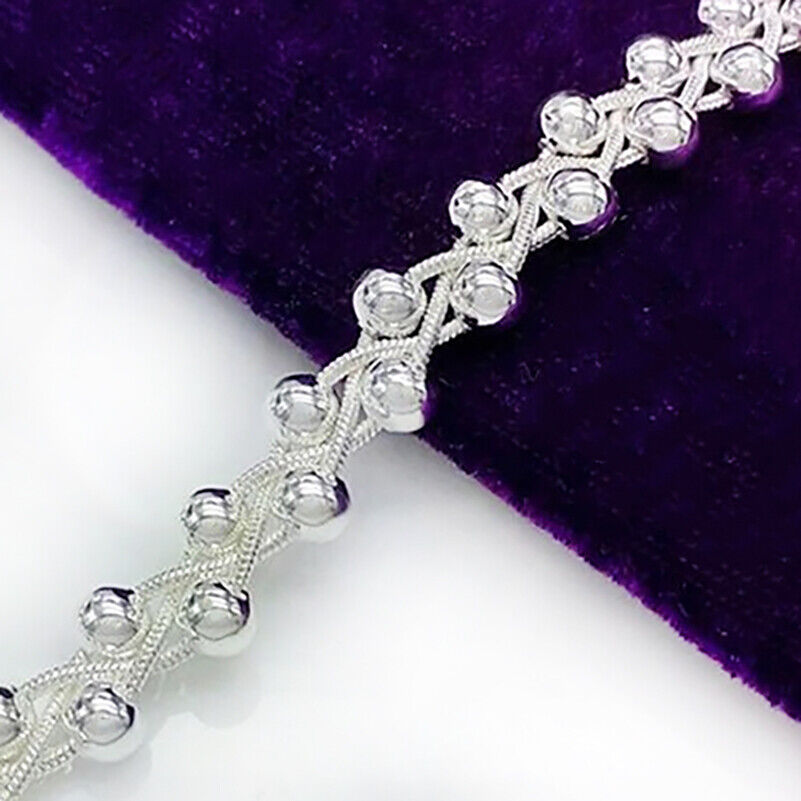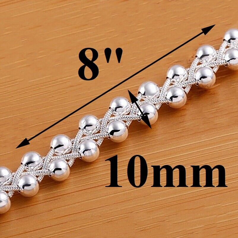 925 Sterling Silver Womens 8" Large 10mm Snake Beaded Bracelet w GiftPk D749