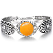 Burmese Yellow Jade Women's Sterling Silver Bracelet Bangle w Magnetic Clasp D3