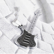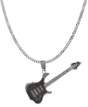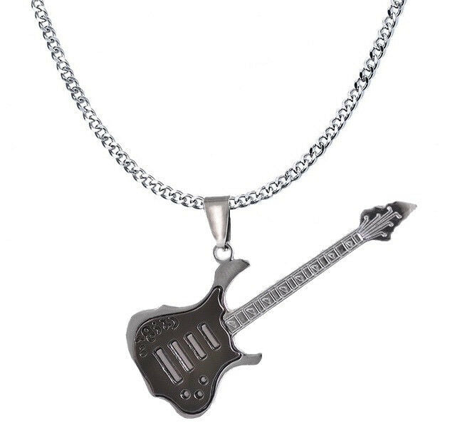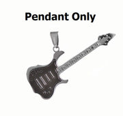 925 Sterling Silver Curb Link Chain Mens Womens Necklace - Guitar Pendant D624SS