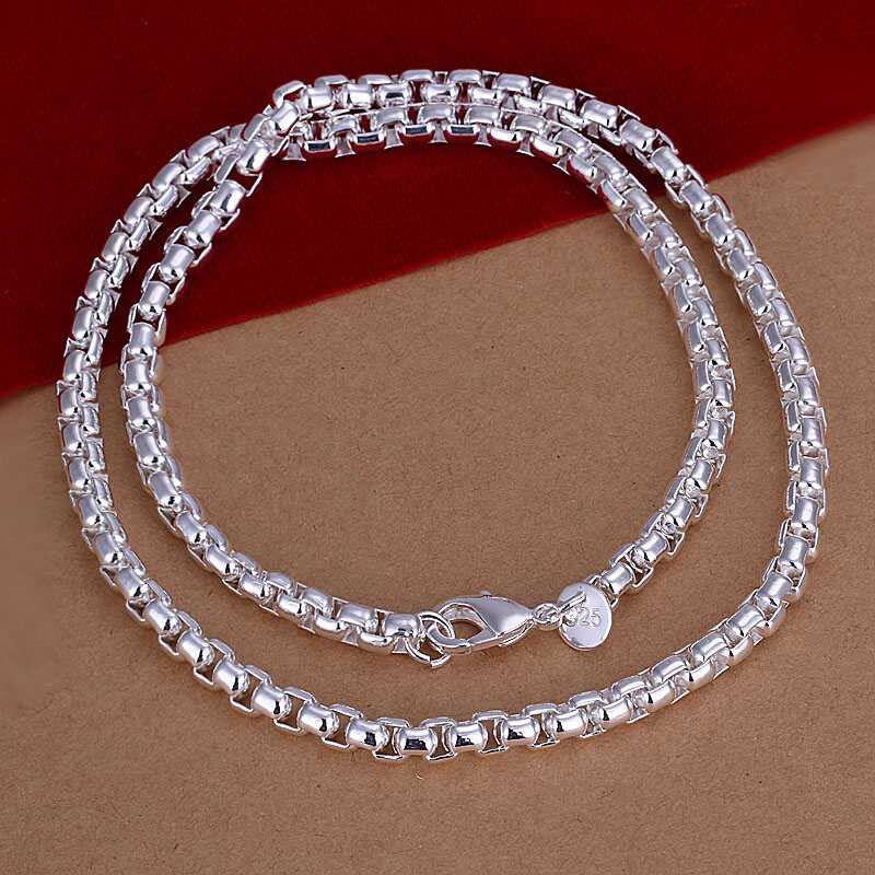 925 Sterling Silver Women's 4mm Round Box Link Chain Necklace w GiftPkg D615