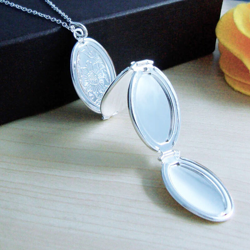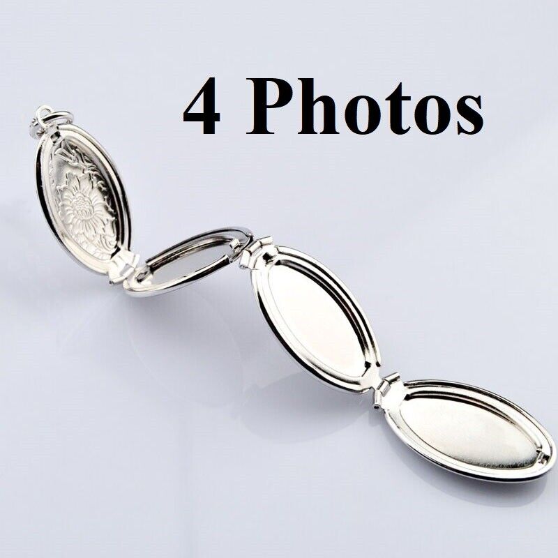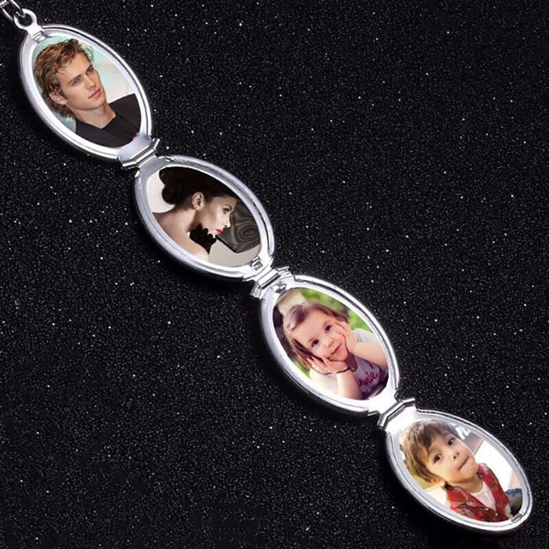 925 Sterling Silver Womens Chain Link Necklace With Multi Photo Locket D625