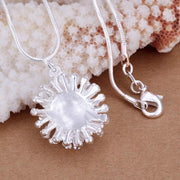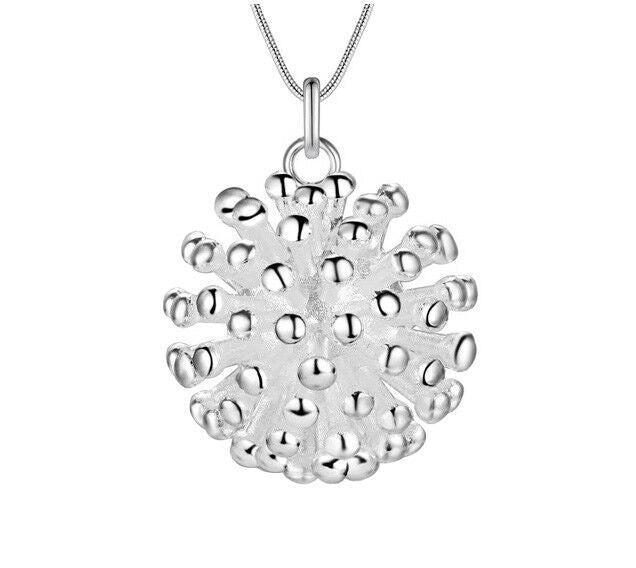 925 Sterling Silver Womens Elegant Fireworks Pendant And 20" Snake Necklace D622